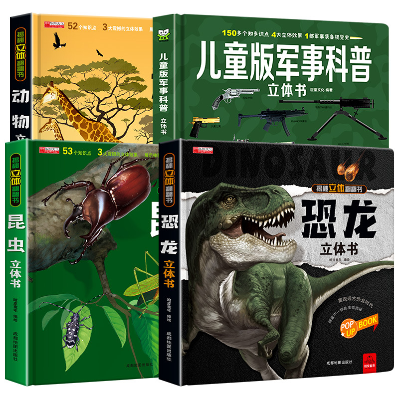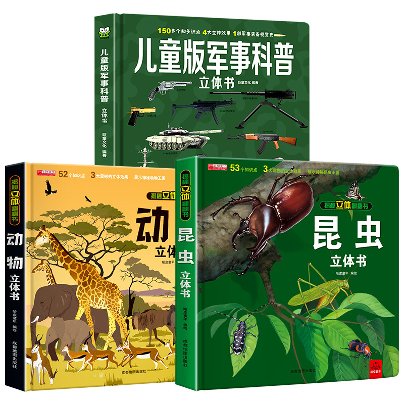 children's military encyclopedia + animal pop-up book + insect pop-up book