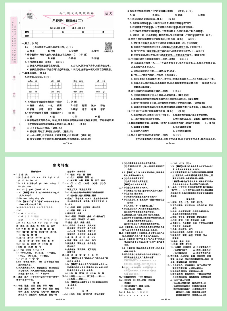 new version of xiaosheng junior high school truly simulating test paper chinese and english full set of primary school graduation and further study real test paper selection