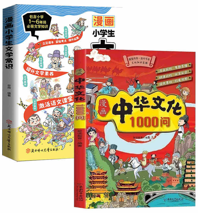 [2 volumes] comics chinese culture 1000 questions + primary school students must recite literary common sense 228