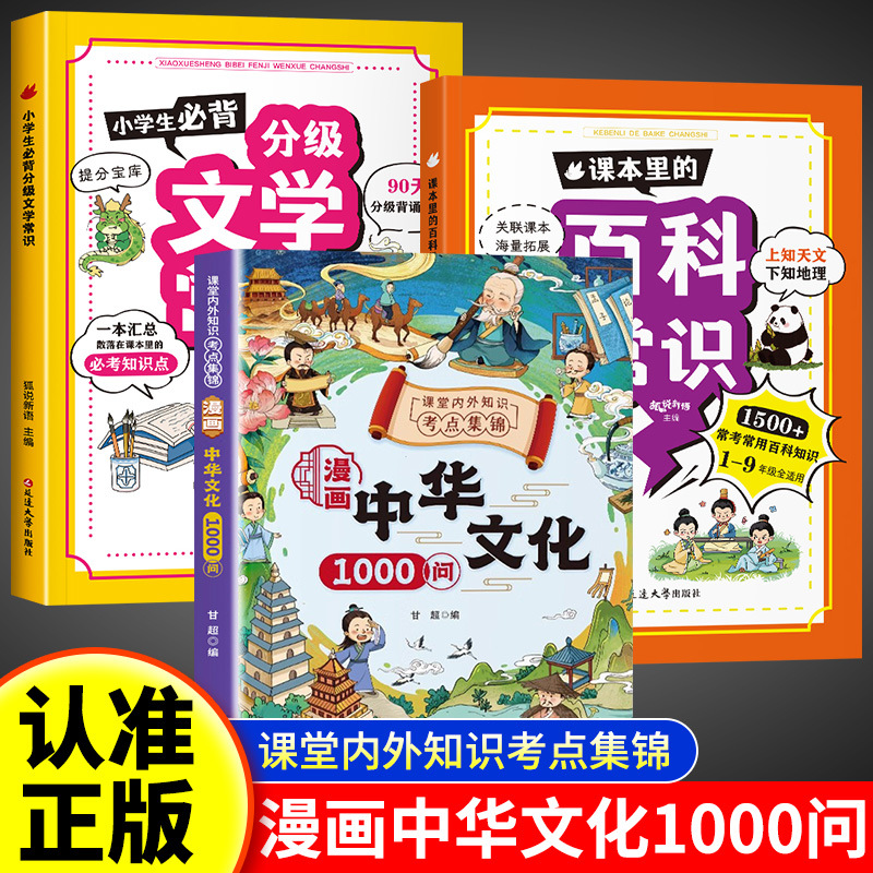 [3 volumes] chinese culture 1000 questions + graded literature common sense + encyclopedia common sense