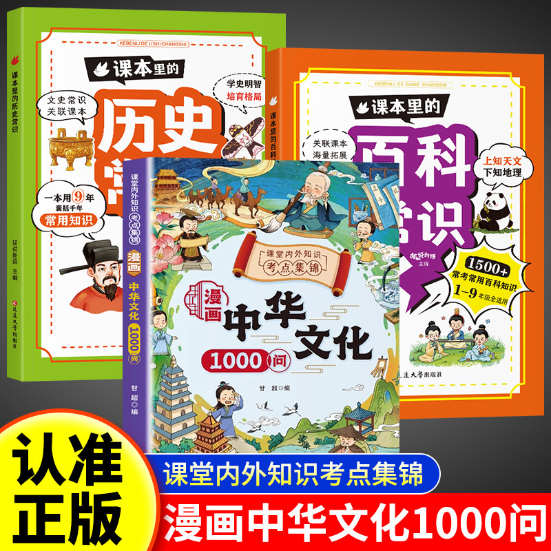 [3 volumes] chinese culture 1000 questions + historical common sense + encyclopedia common sense