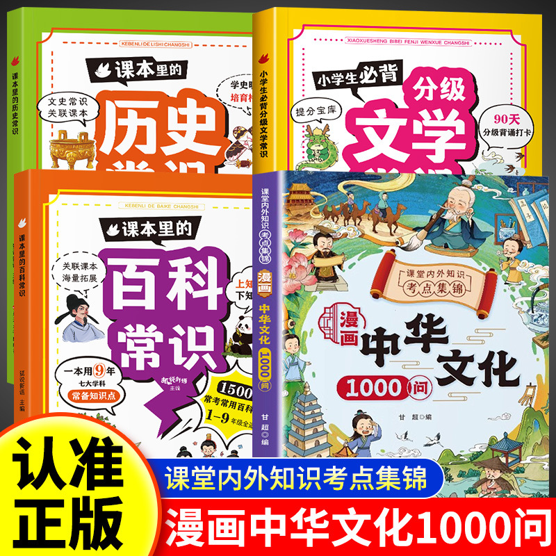 [4 volumes] chinese culture 1000 questions + encyclopedia + literature + history