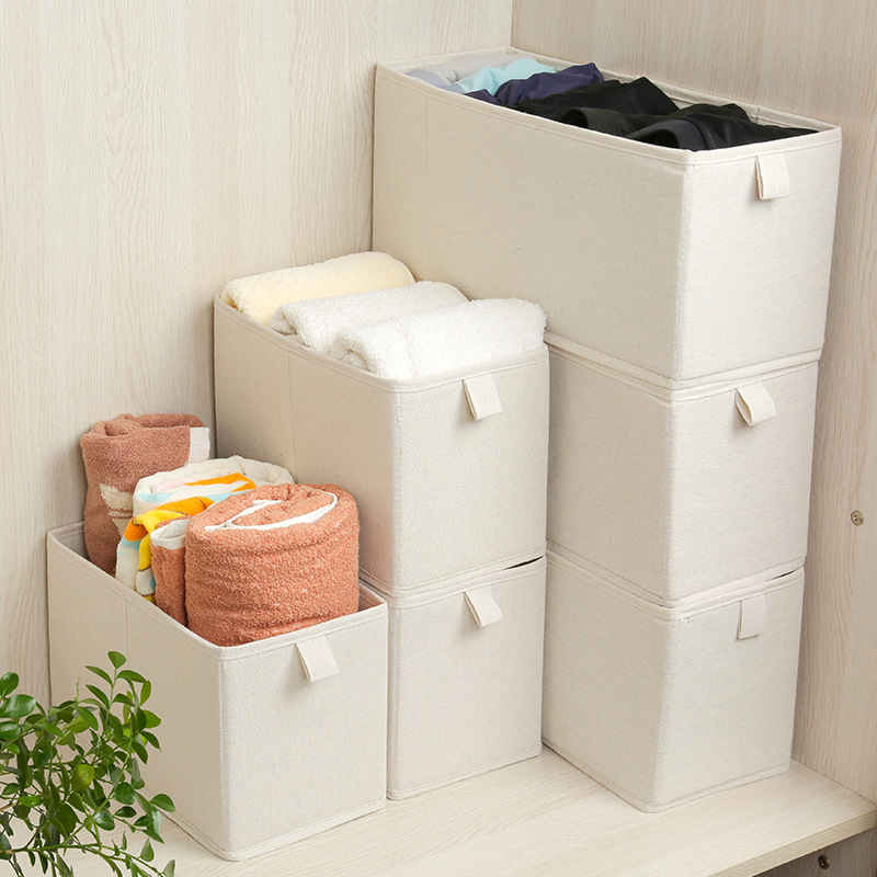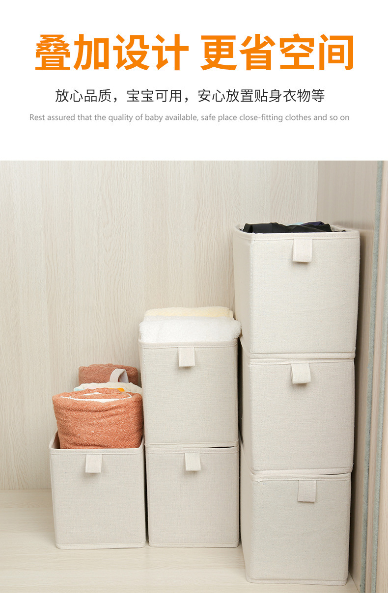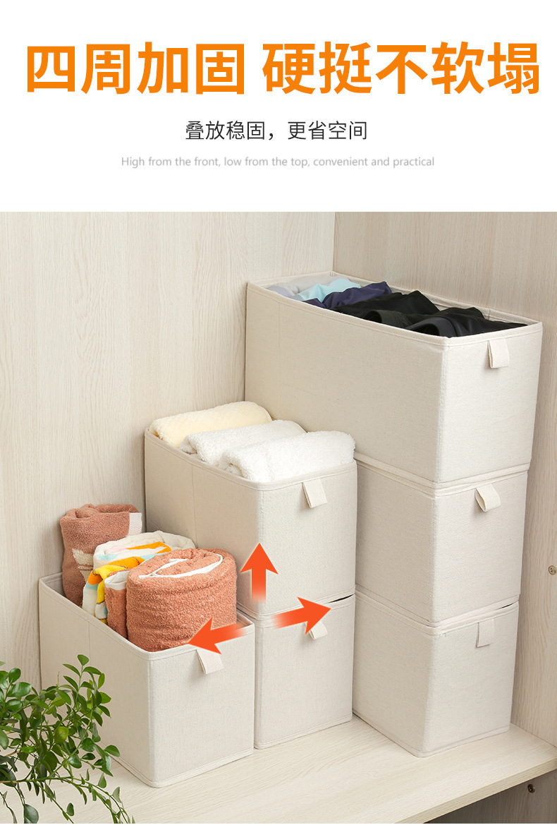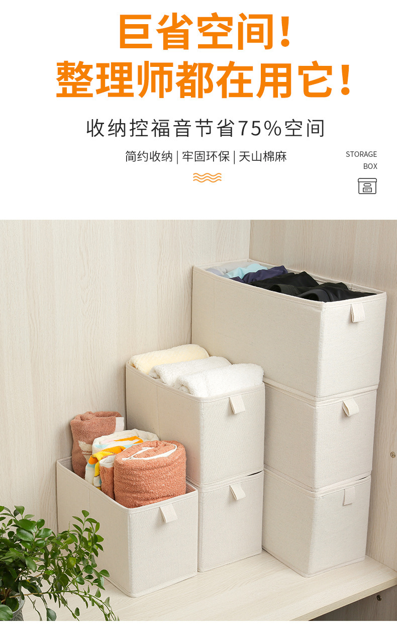 popular cotton and linen narrow seam storage box foldable washed odorless wardrobe clothes organizing storage boxes 中文版