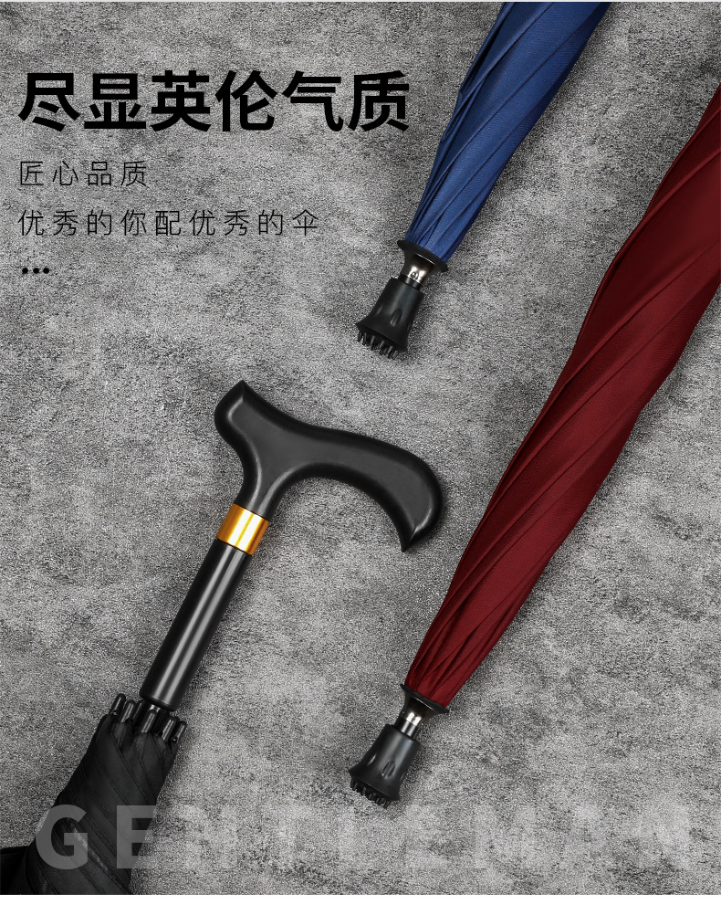 umbrella set 23-inch long handle crutch umbrella elderly mountaineering non-slip automatic umbrella wholesale gift advertising umbrella triple folding umbrella 中文版