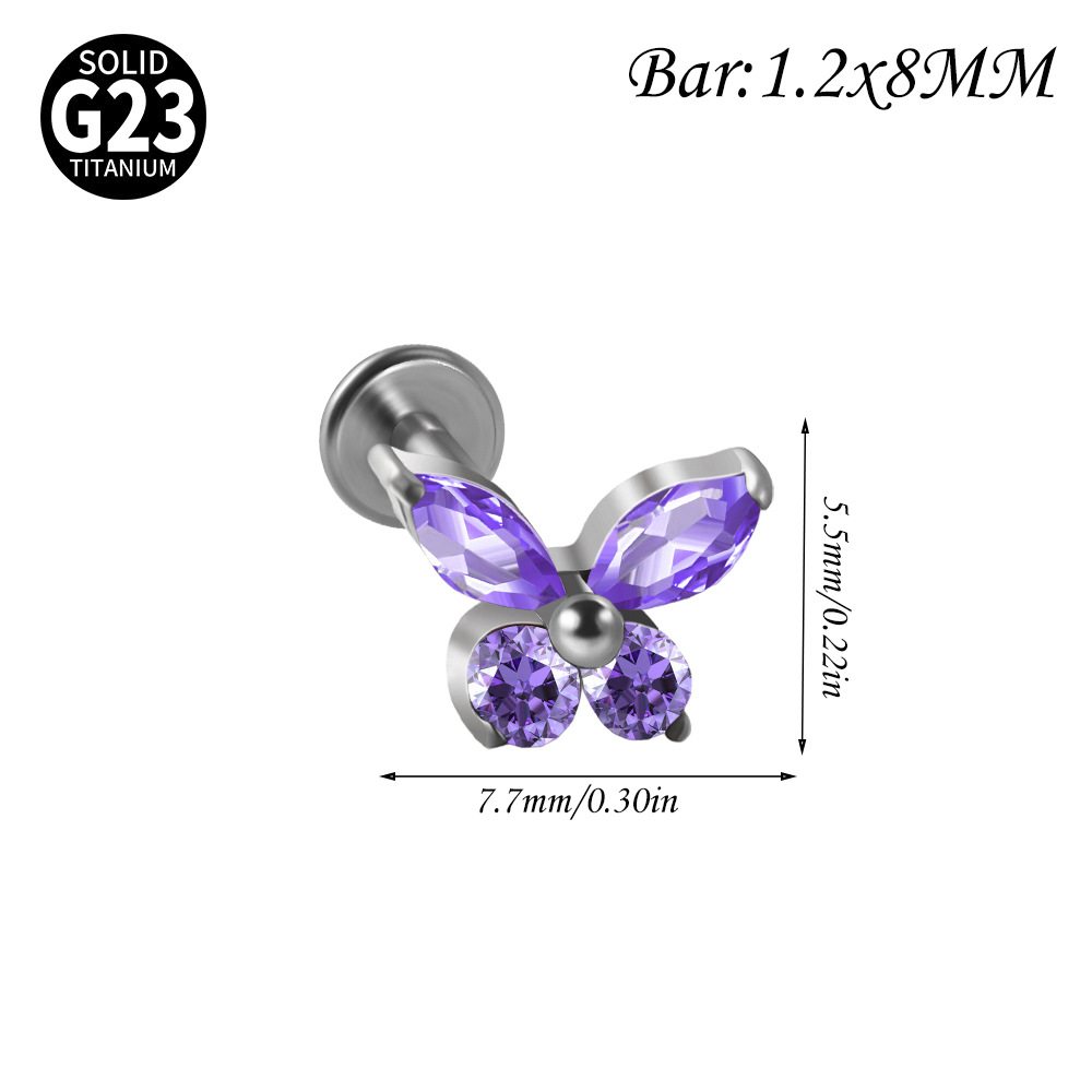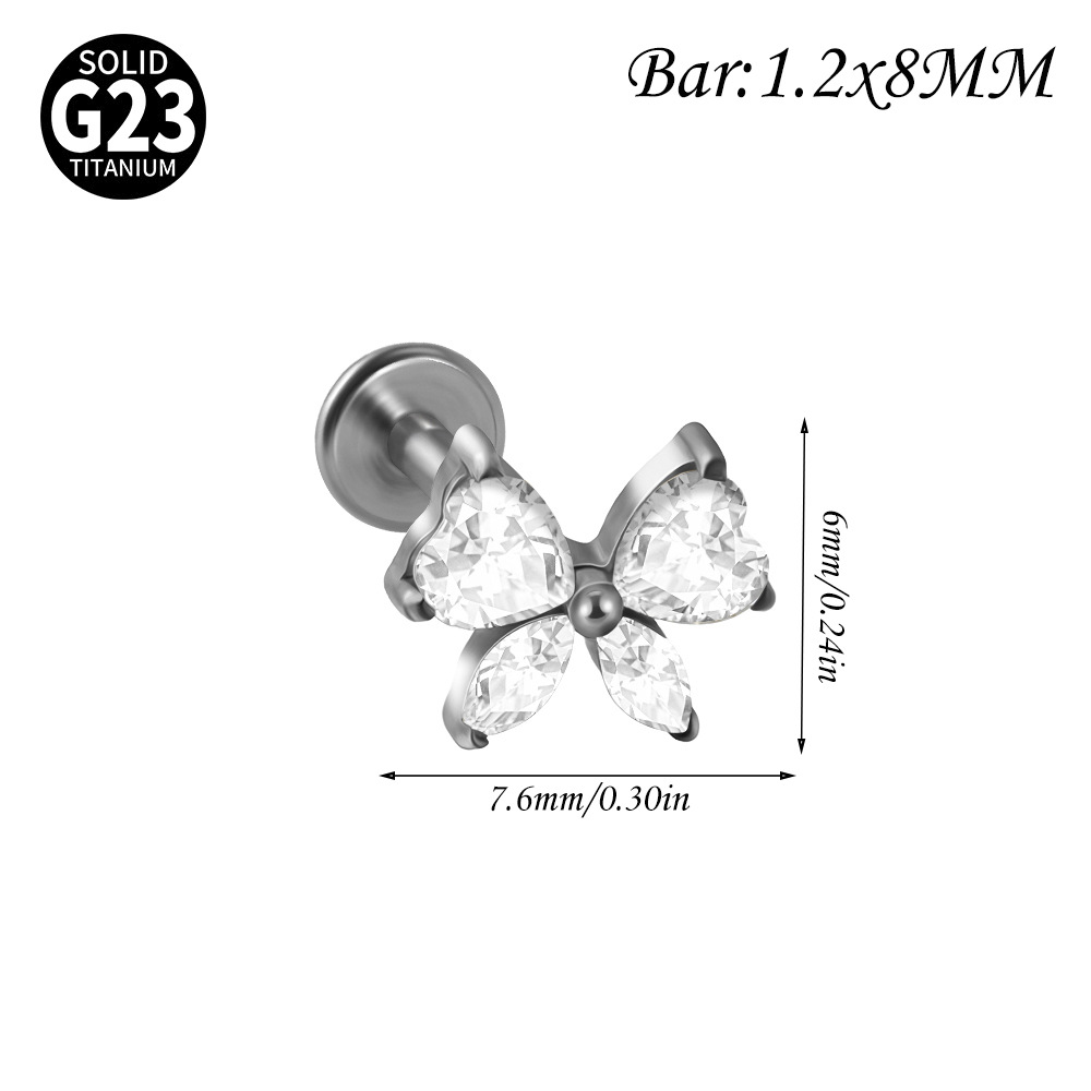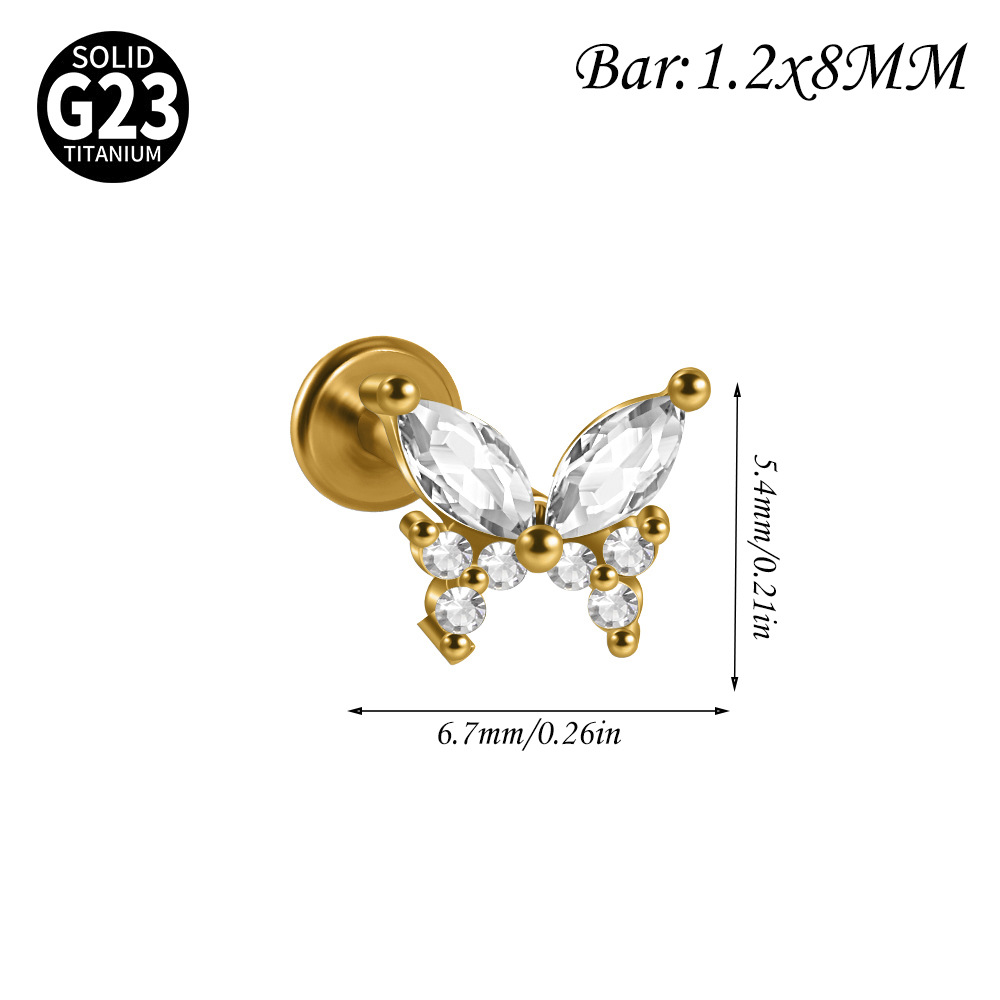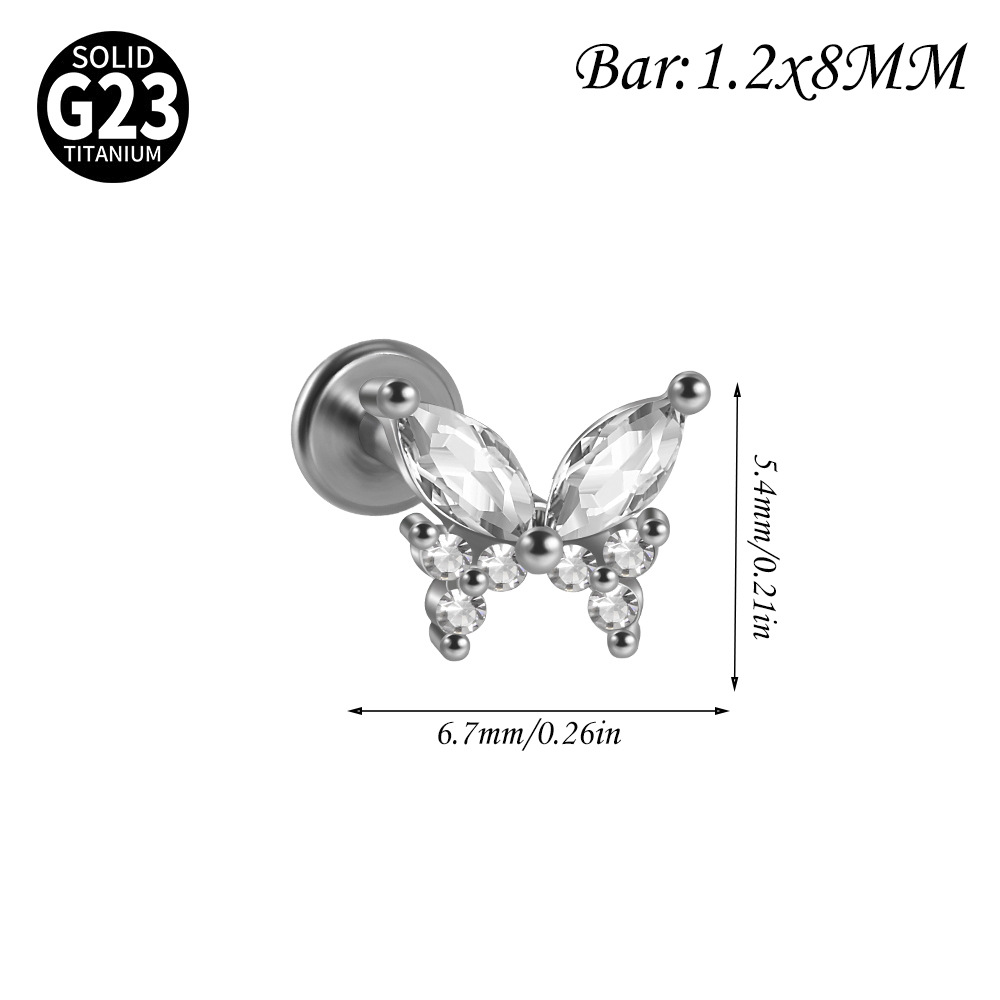 Name: Cross-border F136 titanium alloy zircon butterfly ear bone pin, T-shaped lip piercing earring with inner threading eyelet