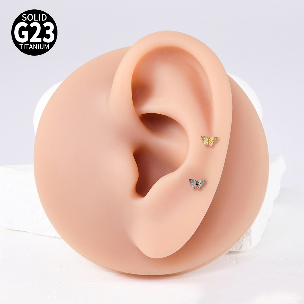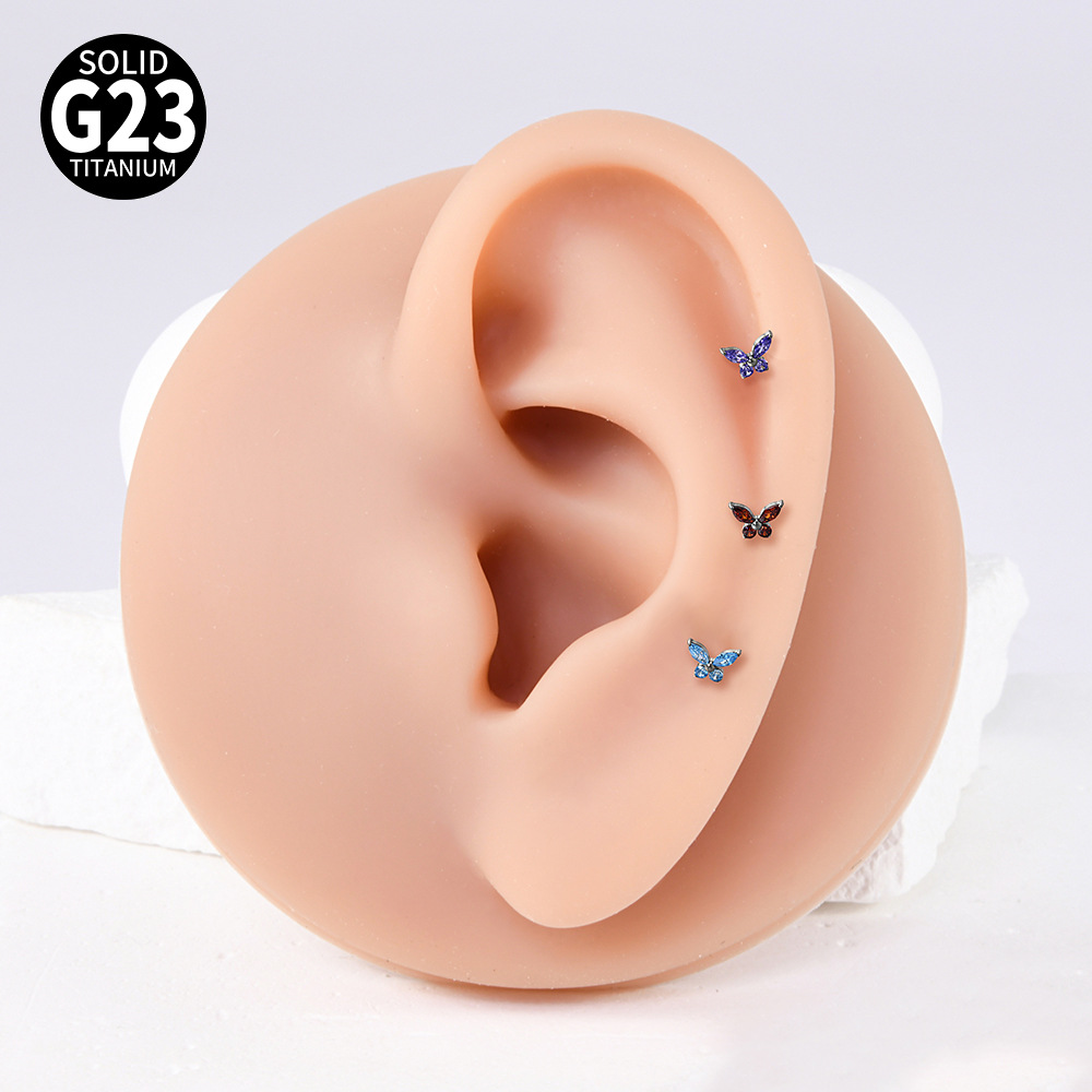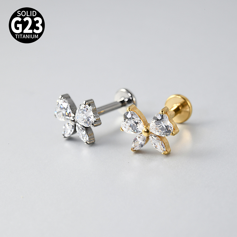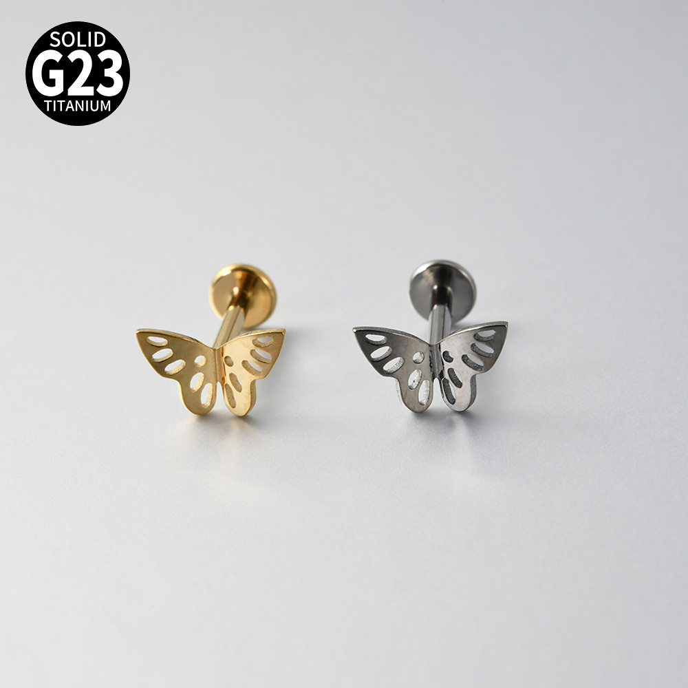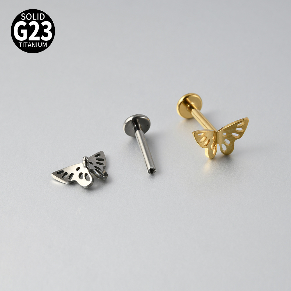 Name: Cross-border F136 titanium alloy zircon butterfly ear bone pin, T-shaped lip piercing earring with inner threading eyelet