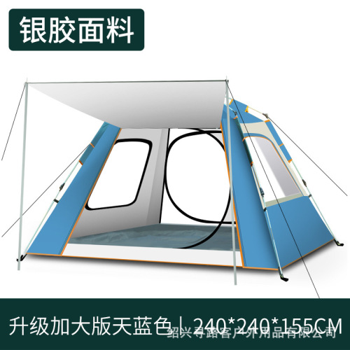 factory customized processing and printing logo automatic wild camping outdoor vinyl 3-4 people four sides sunscreen and rain-proof tent 中文版