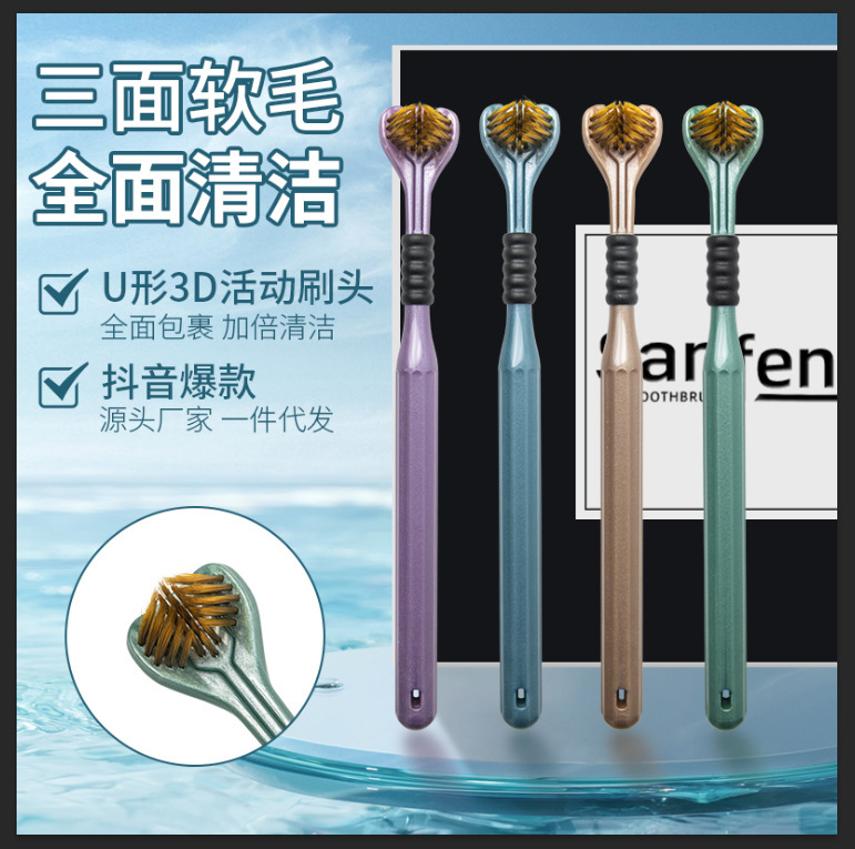 three-sided spiral soft-bristle toothbrush 4 boxed