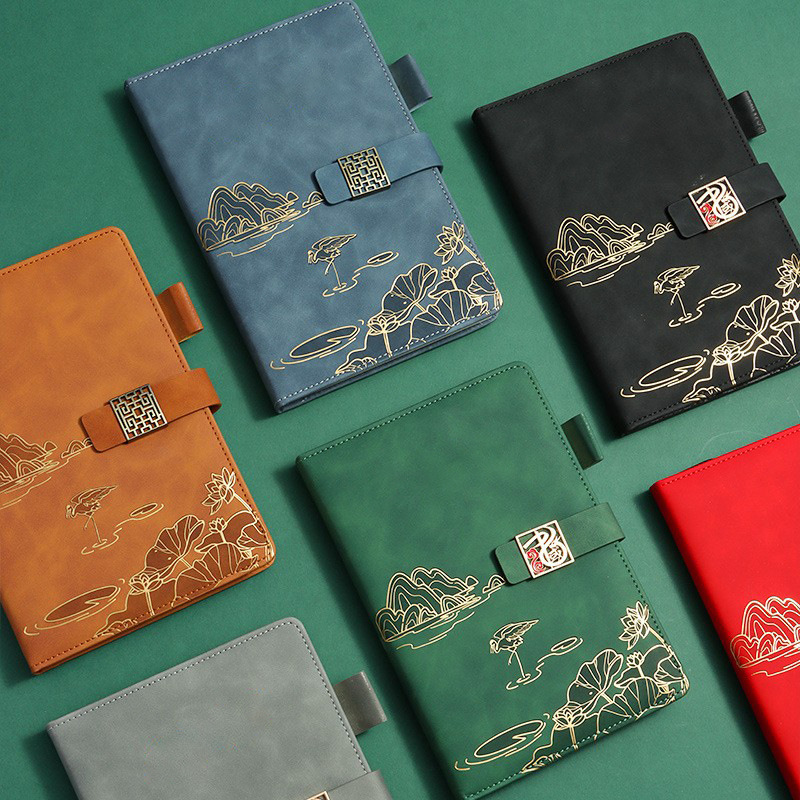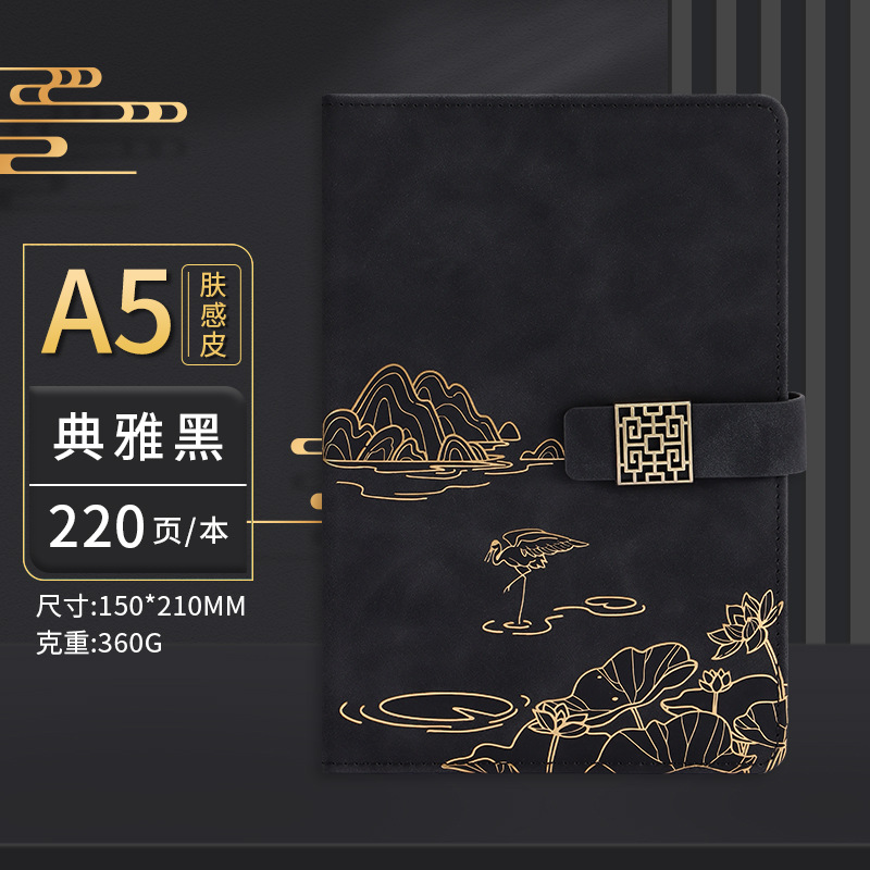 elegant black-retro buckle [a5 three-piece gift box with u disk]]
