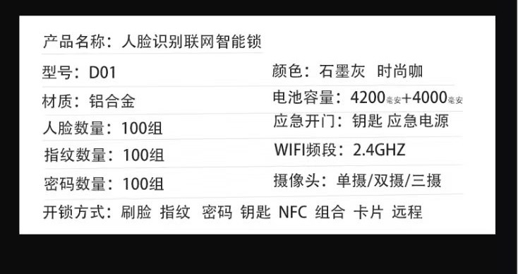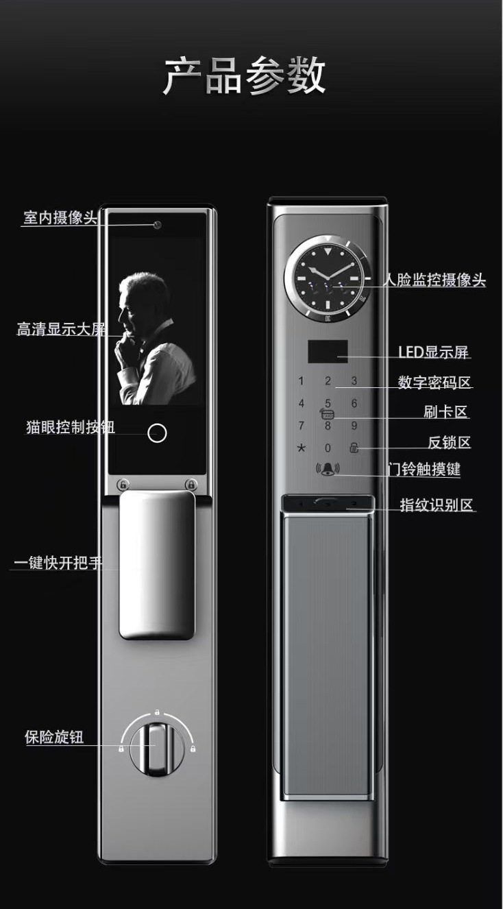 automatic face recognition intelligent cloud lock visual electronic password lock household dual-electric three-camera anti-theft fingerprint lock 中文版
