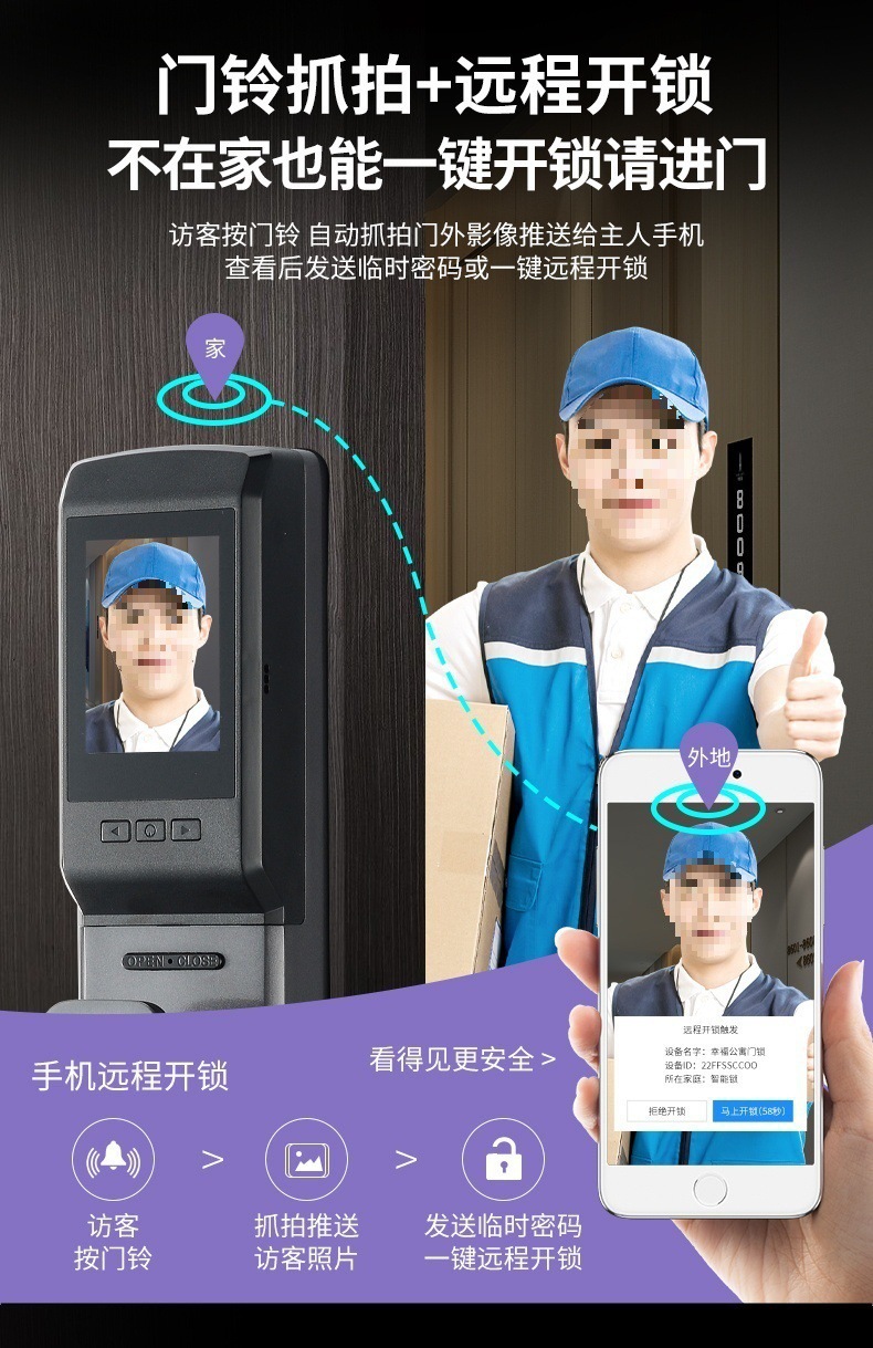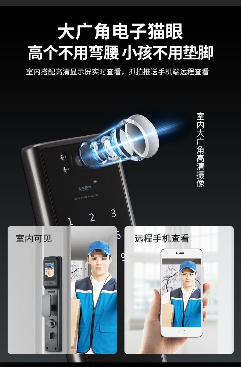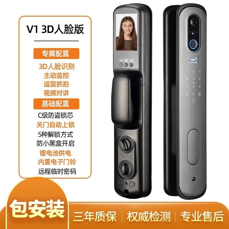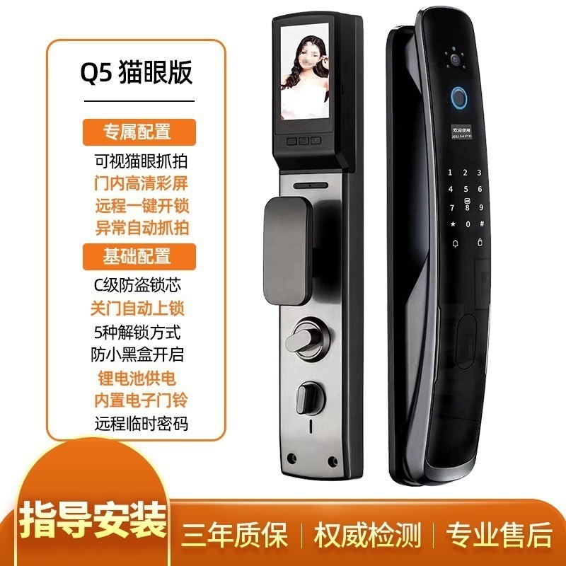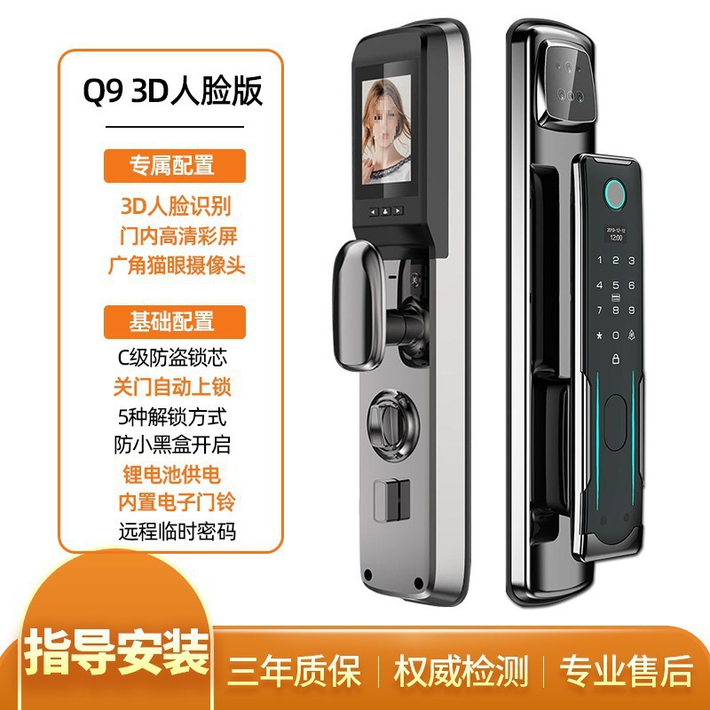 q9 gun black-3d face recognition lock + door-to-door installation