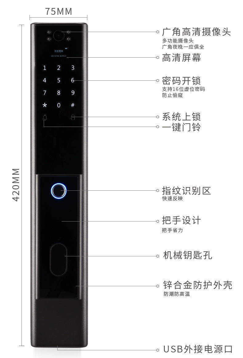 q9 gun black-3d face recognition lock + guide installation