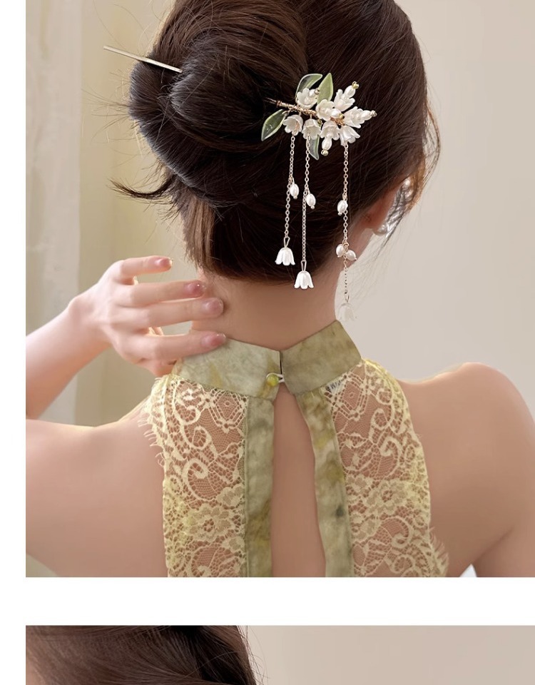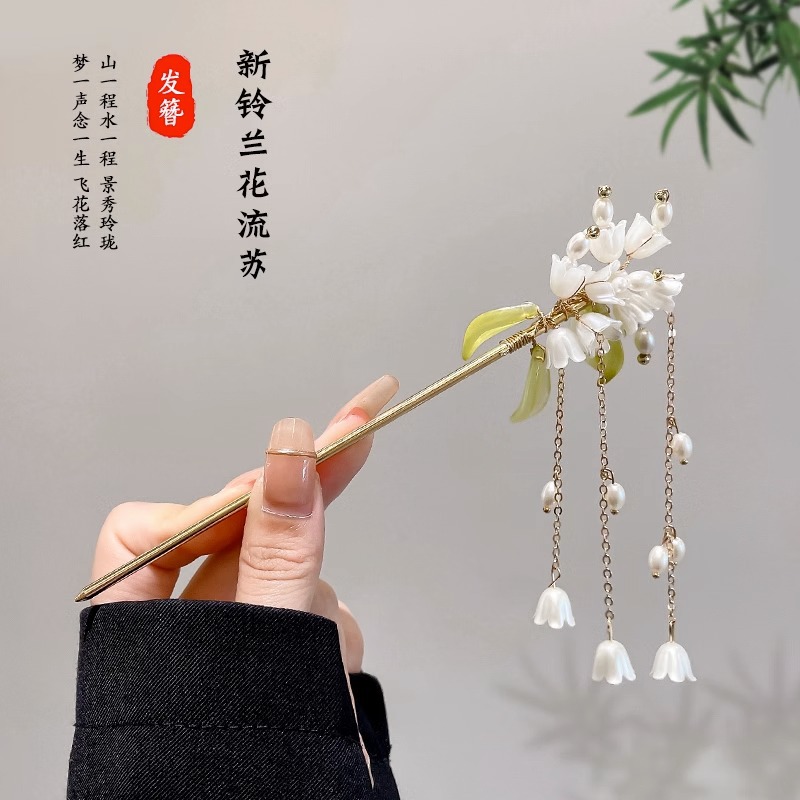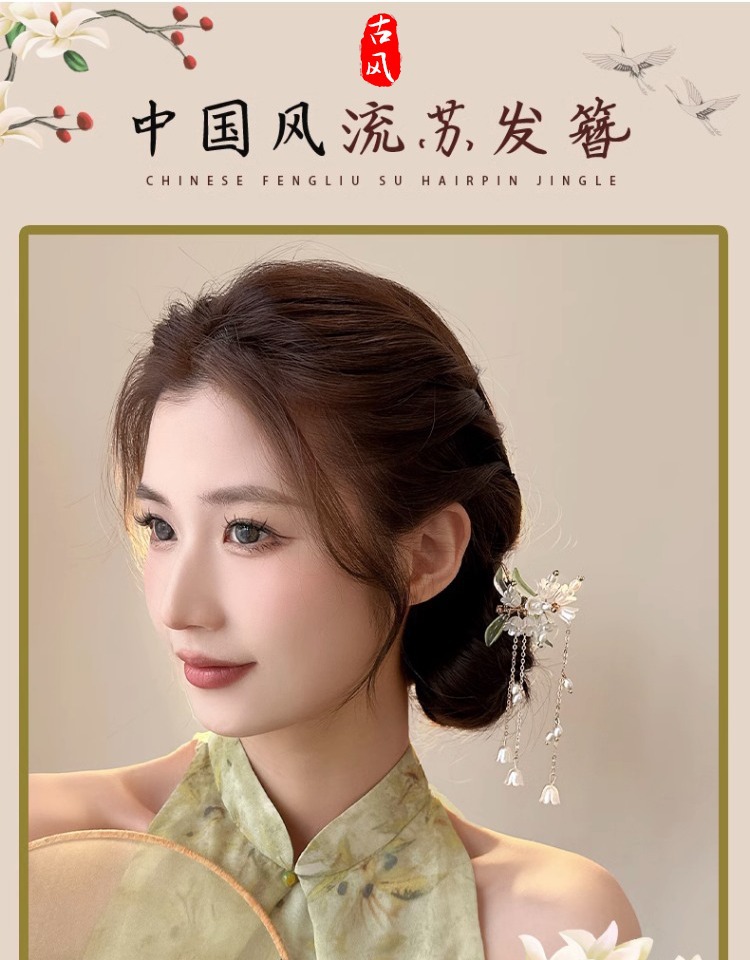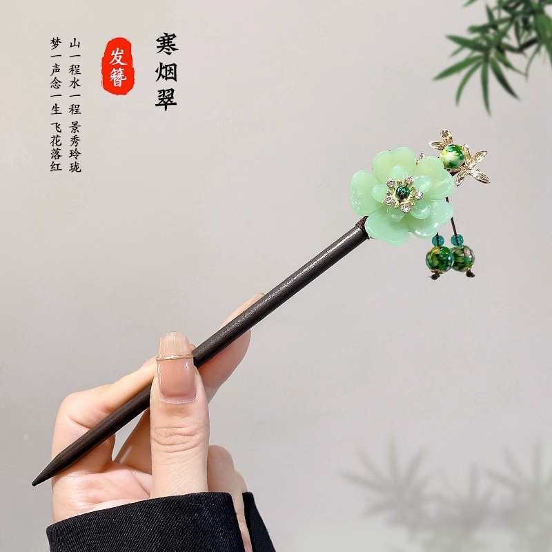 . 3# white jade candle hairpin-silver