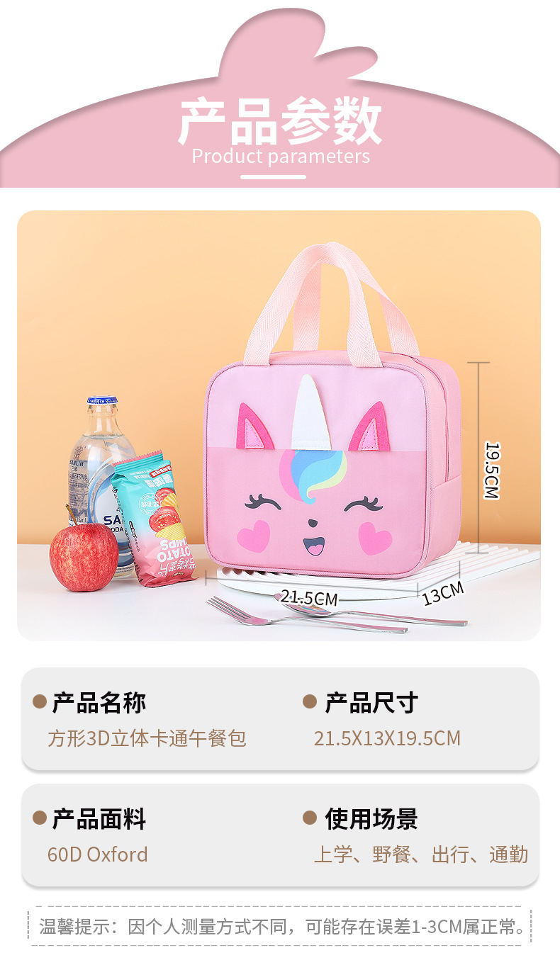 new square three-dimensional cartoon lunch bag portable office worker lunch bag thermal bag bento insulated bag