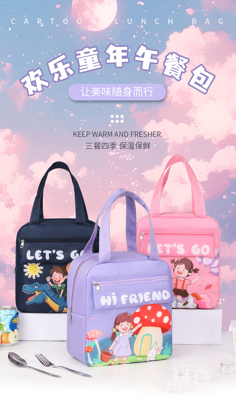 cartoon portable tutorial rice bag student meal lunch bag large capacity oxford cloth lunch bag insulated lunch box bag