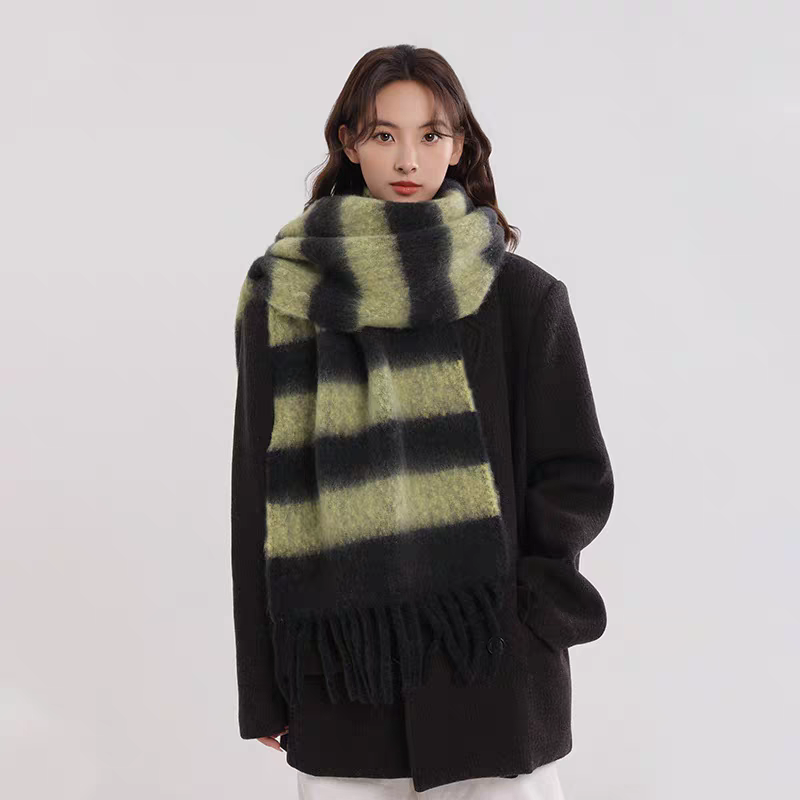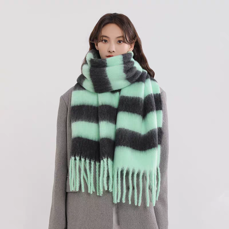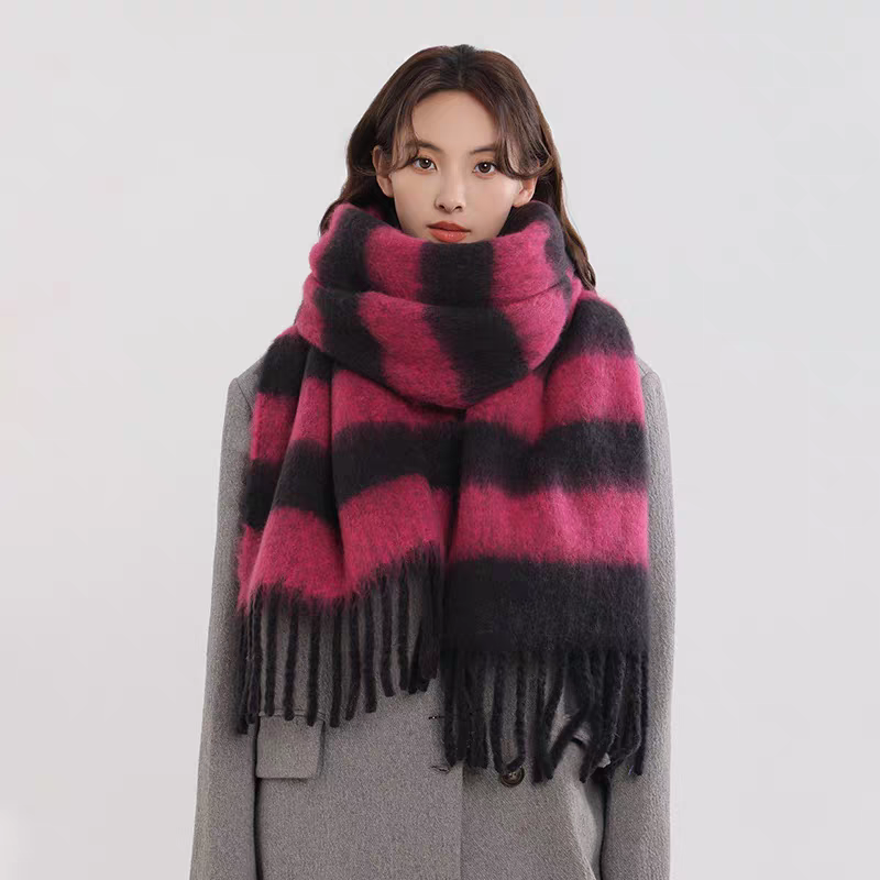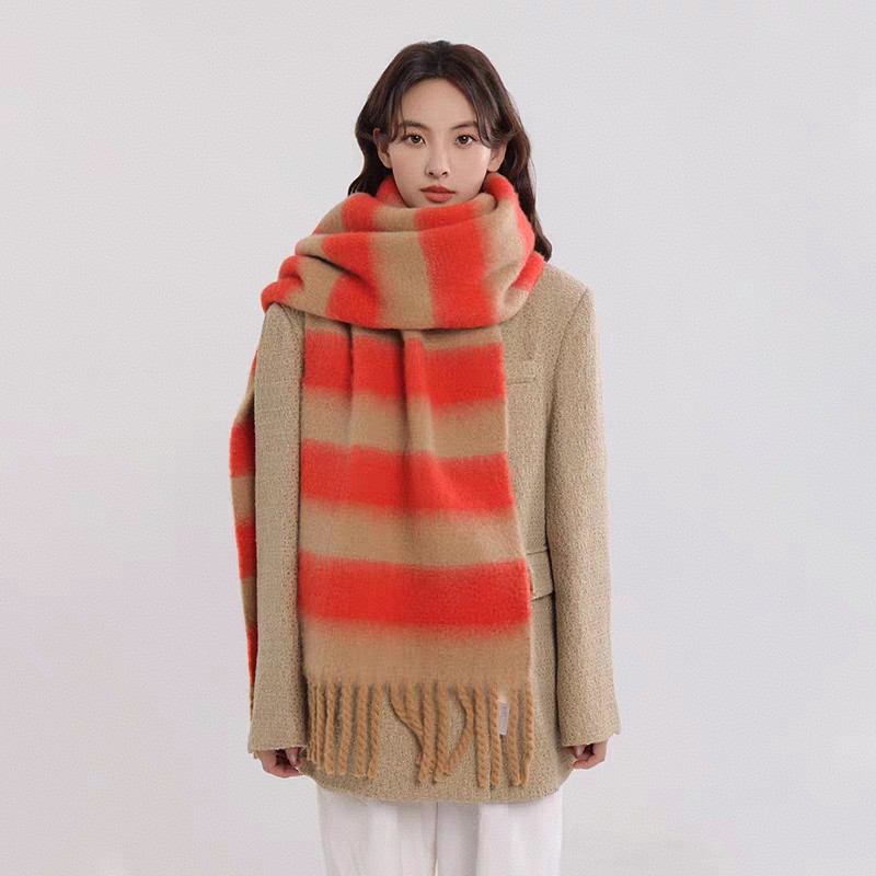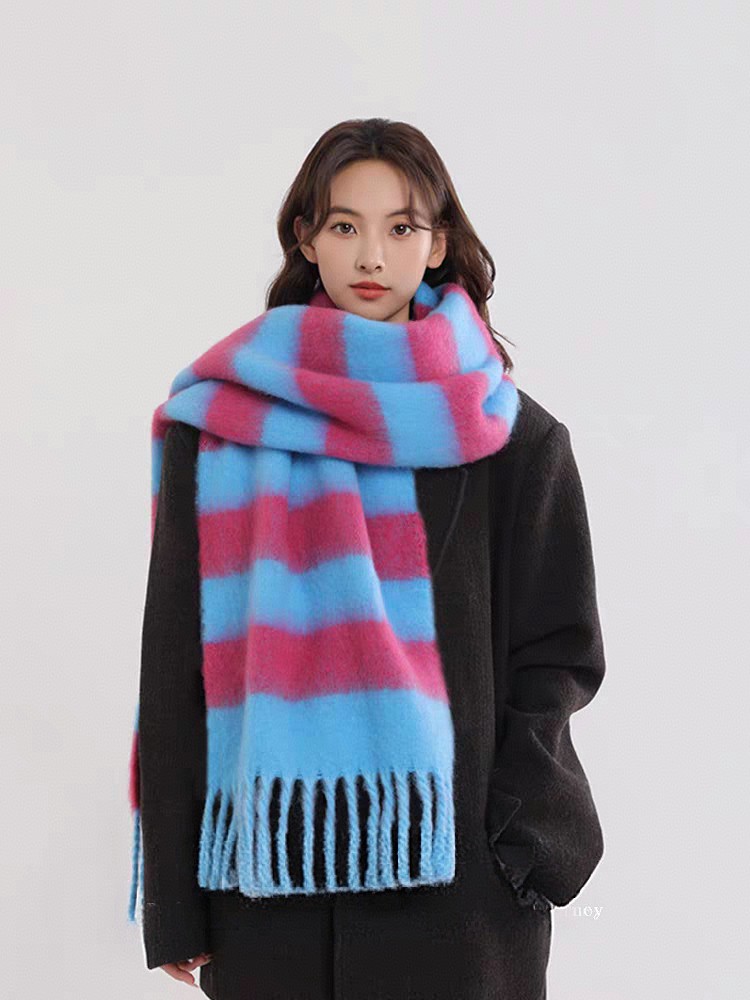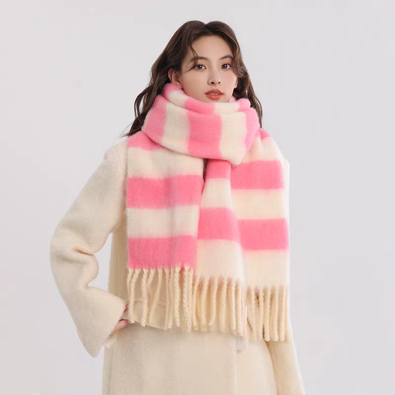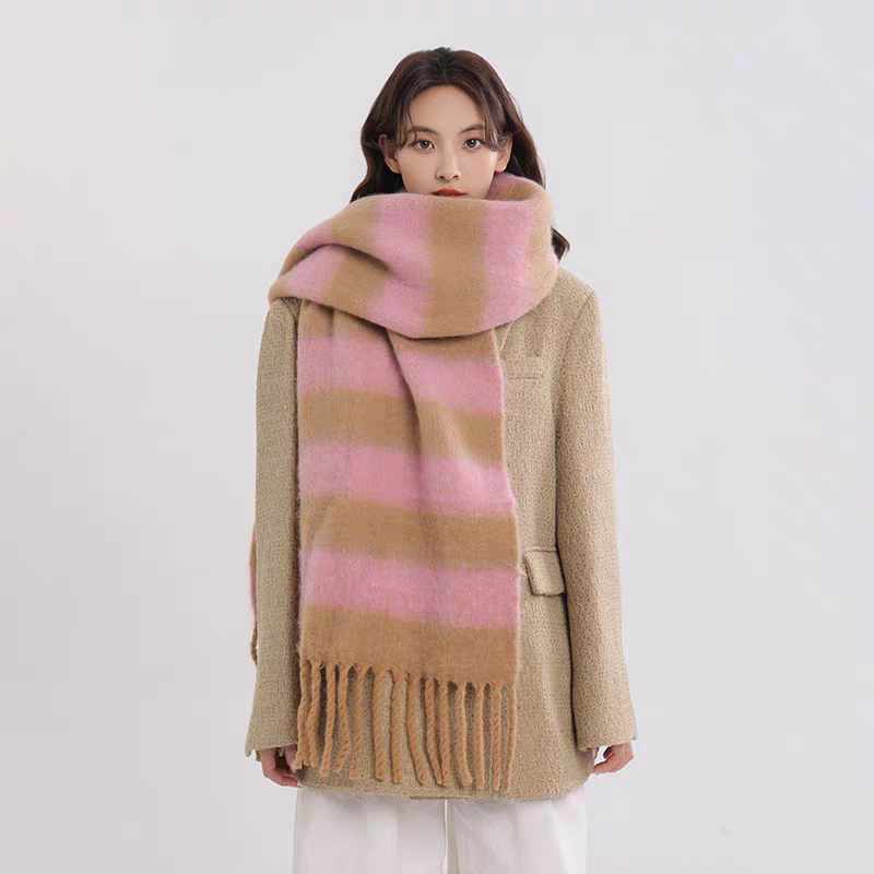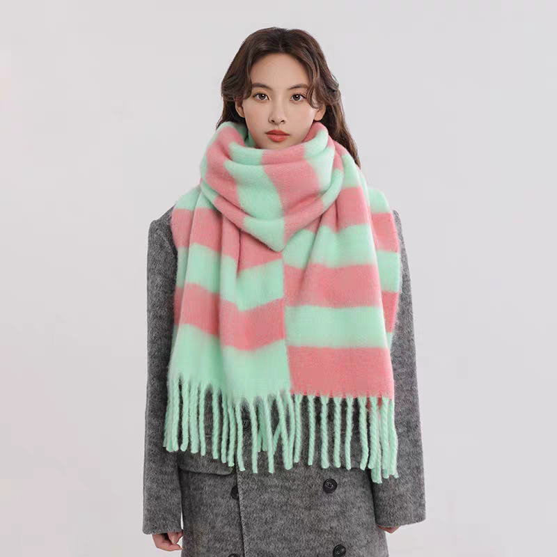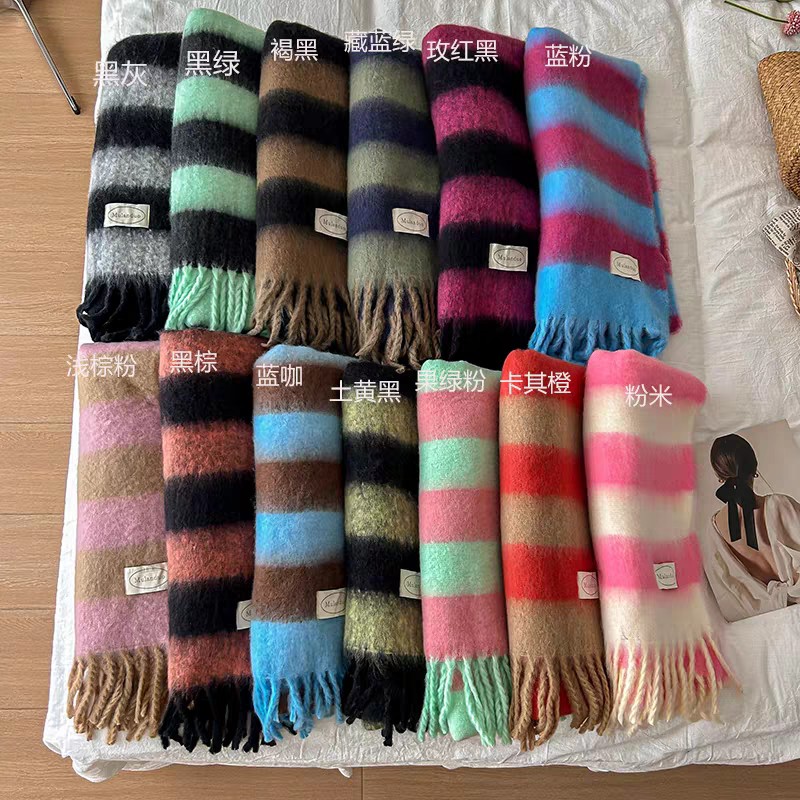 export export scarf wholesale e-commerce live supply chain supply barbed wool korean new horizontal stripe thick beard 中文版