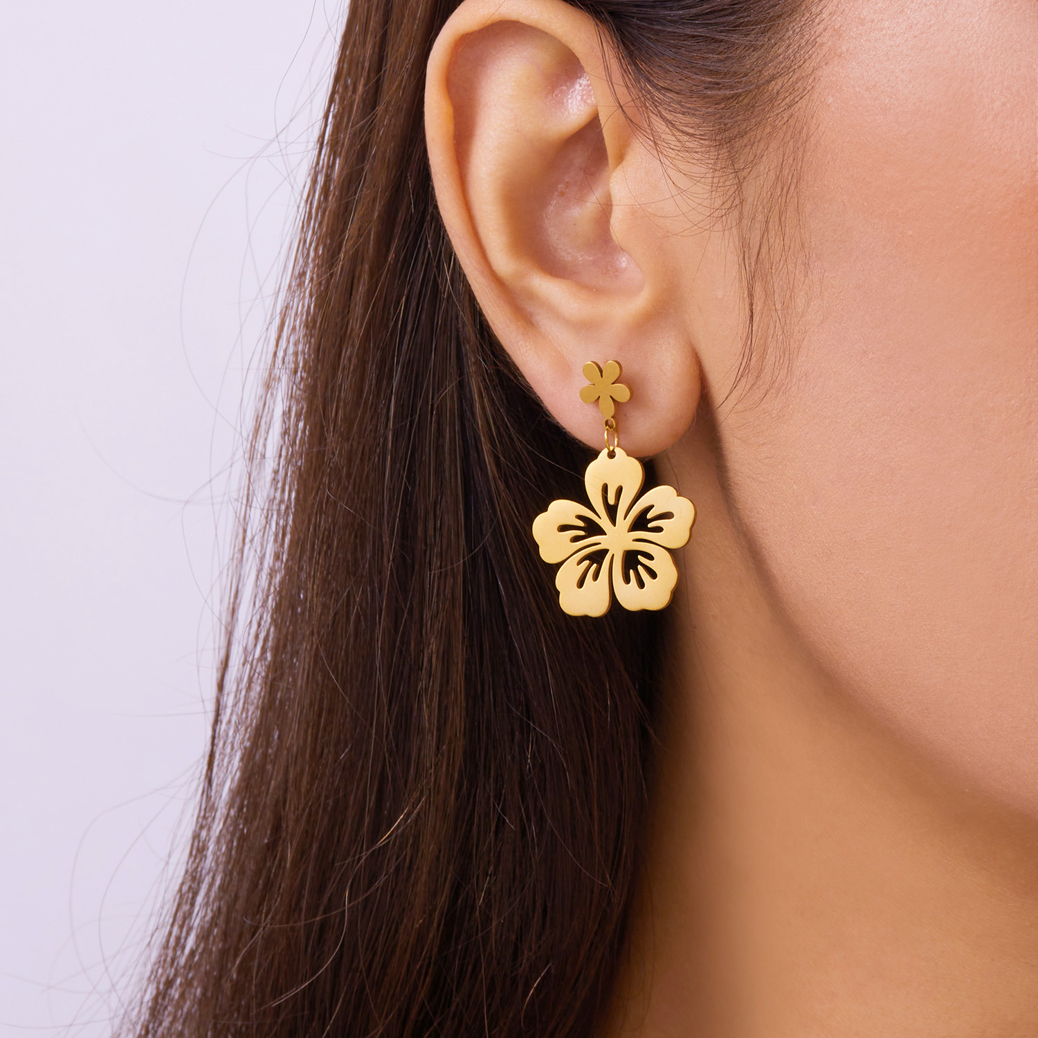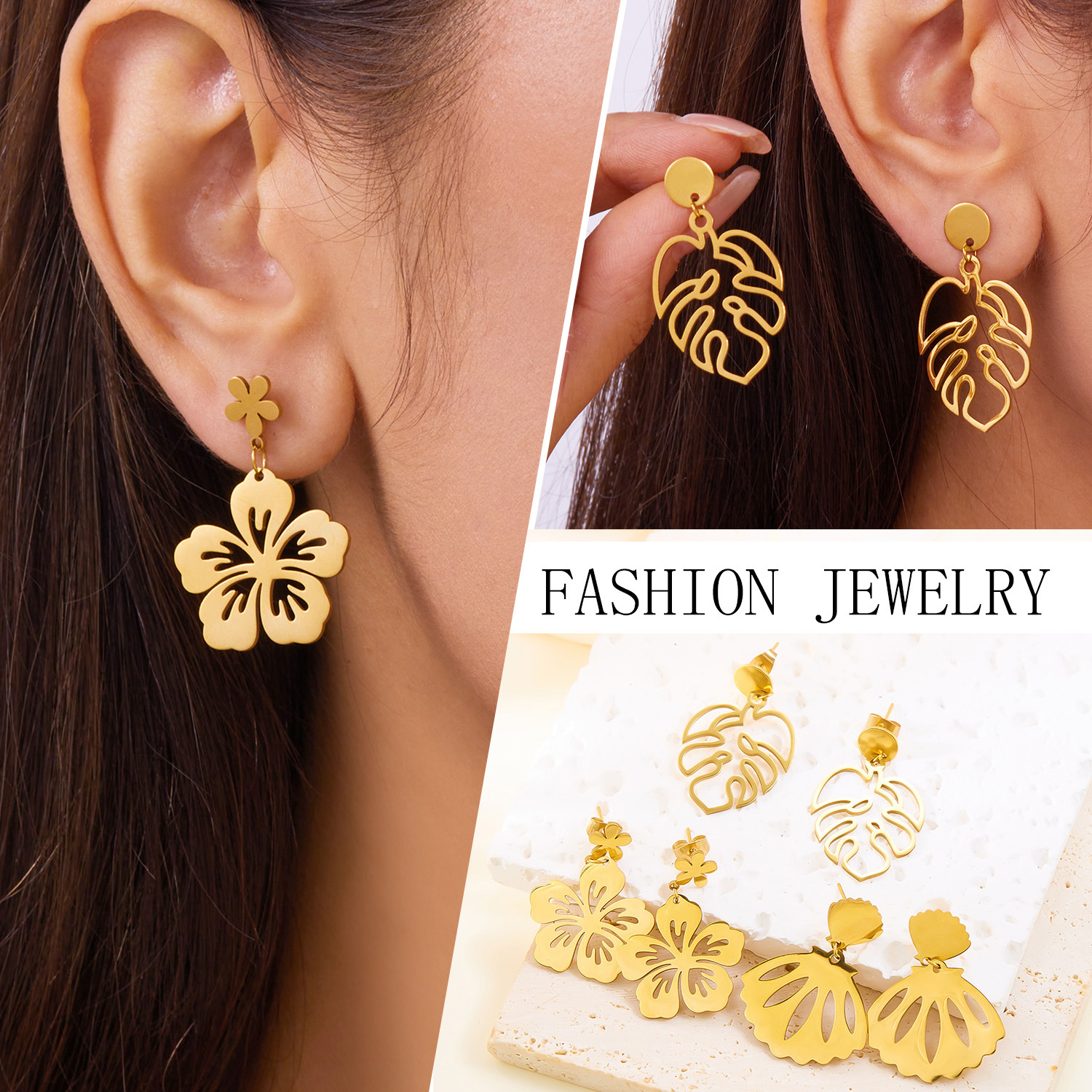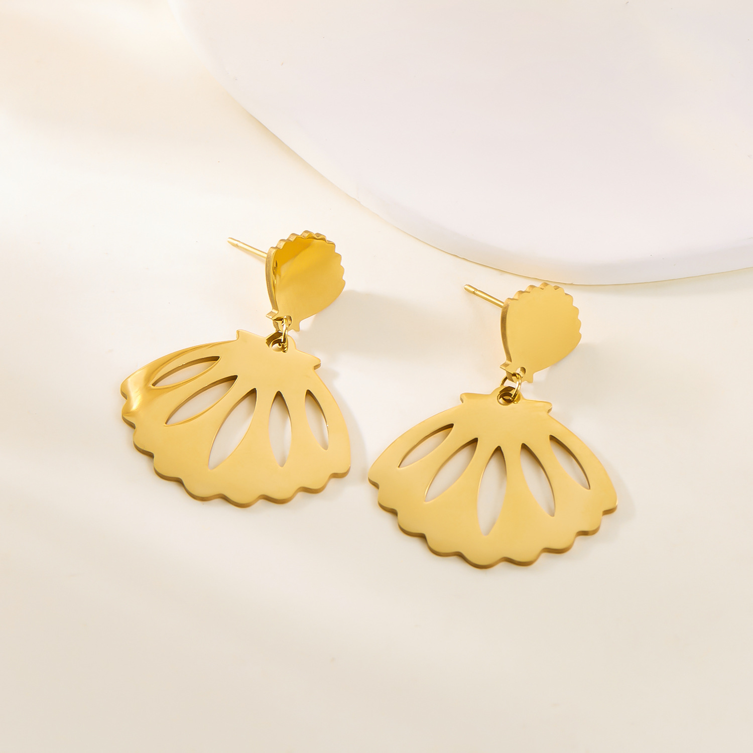 european and american fashion hollowed-out flower stainless steel earrings female sweet earrings hollow blade ornament 中文版