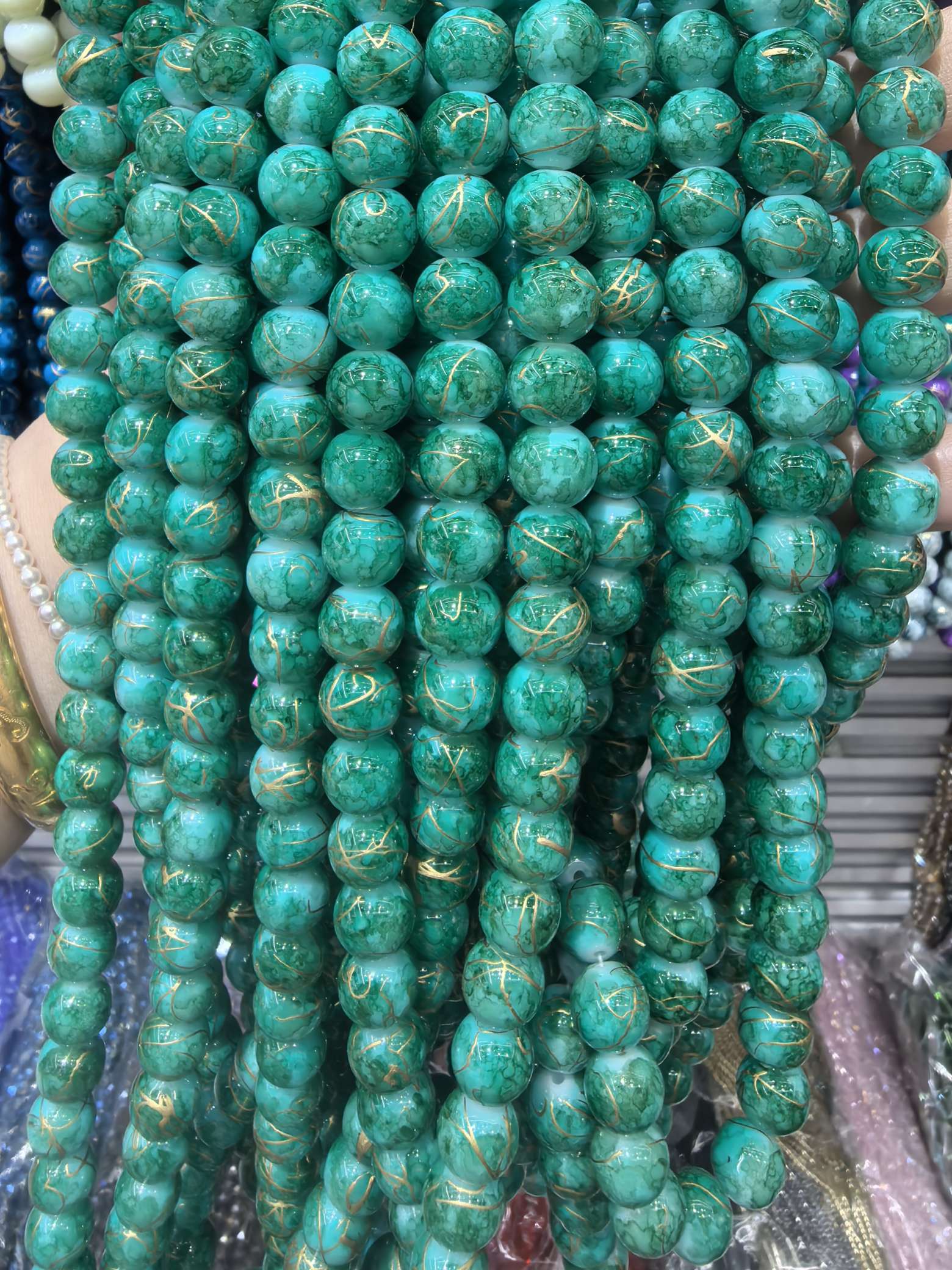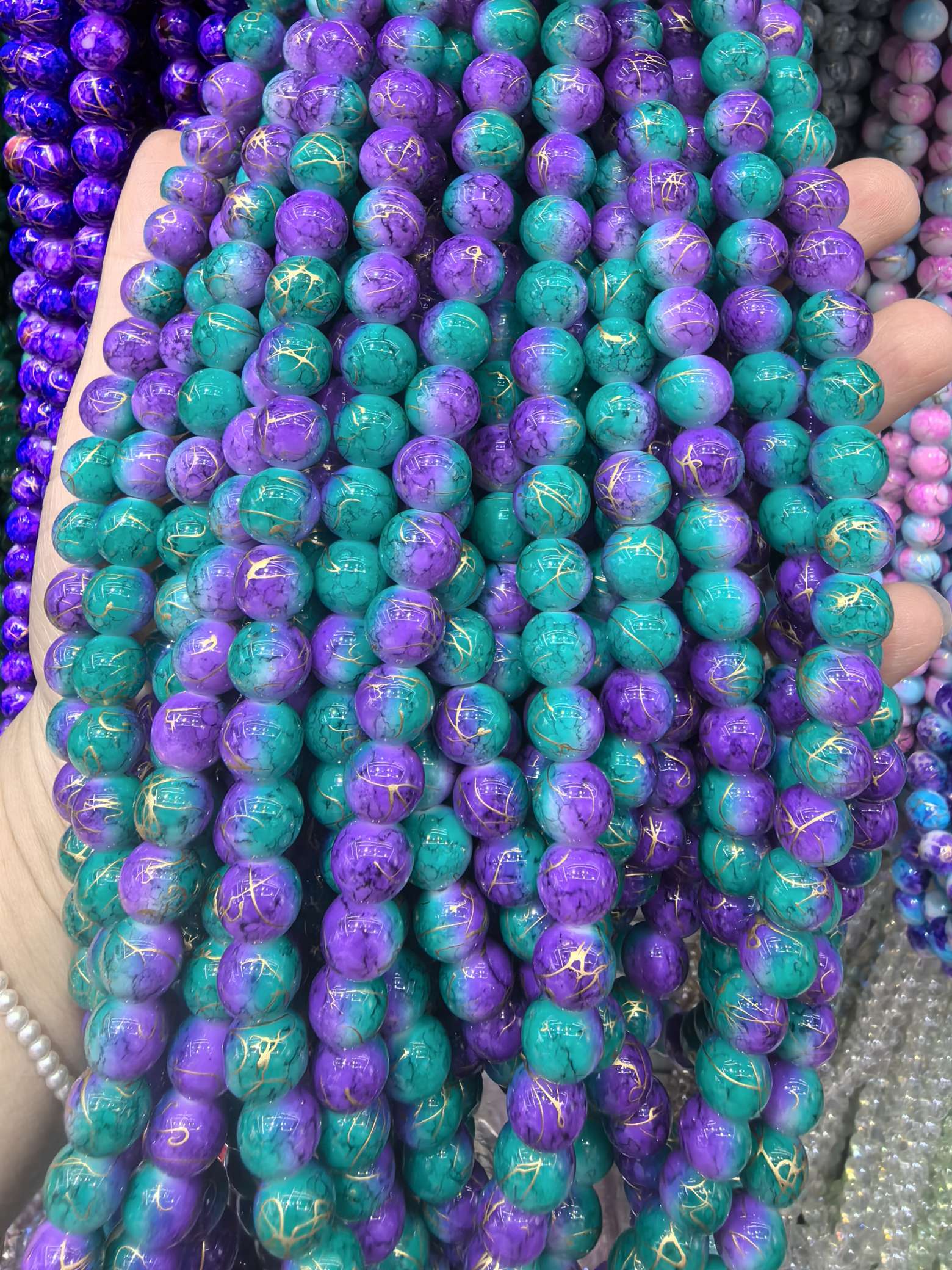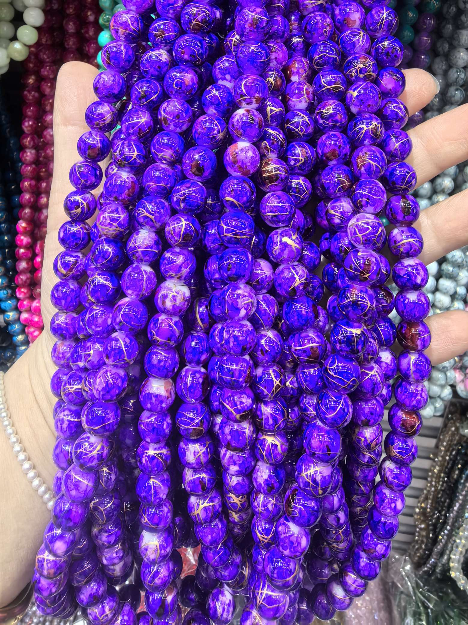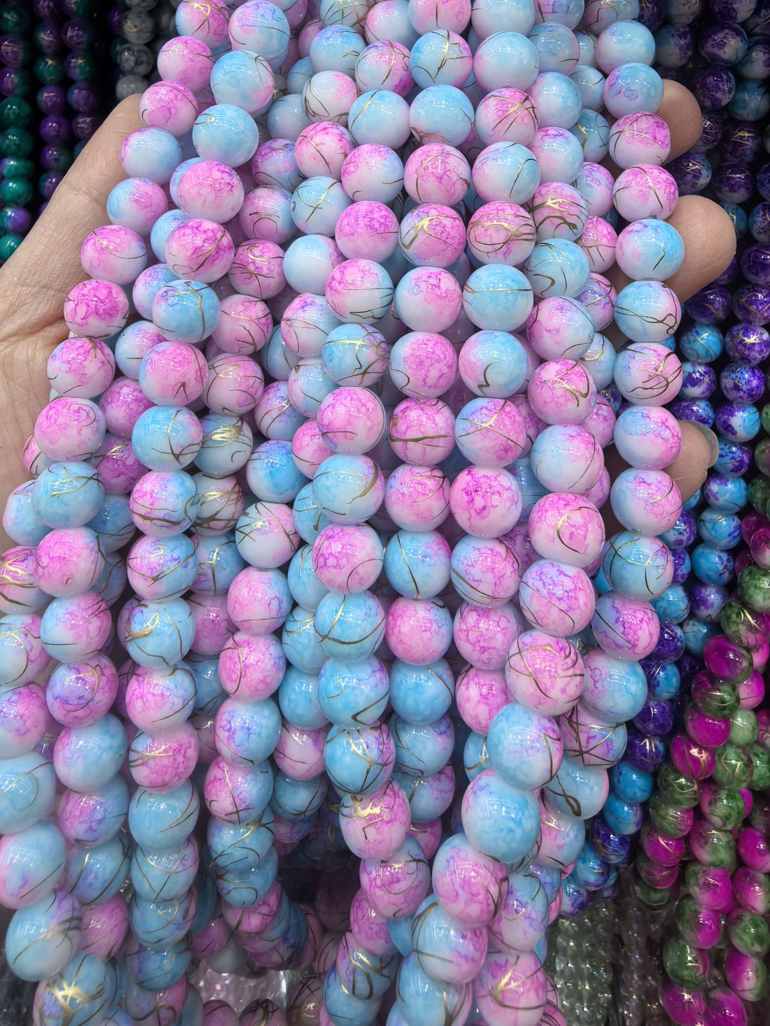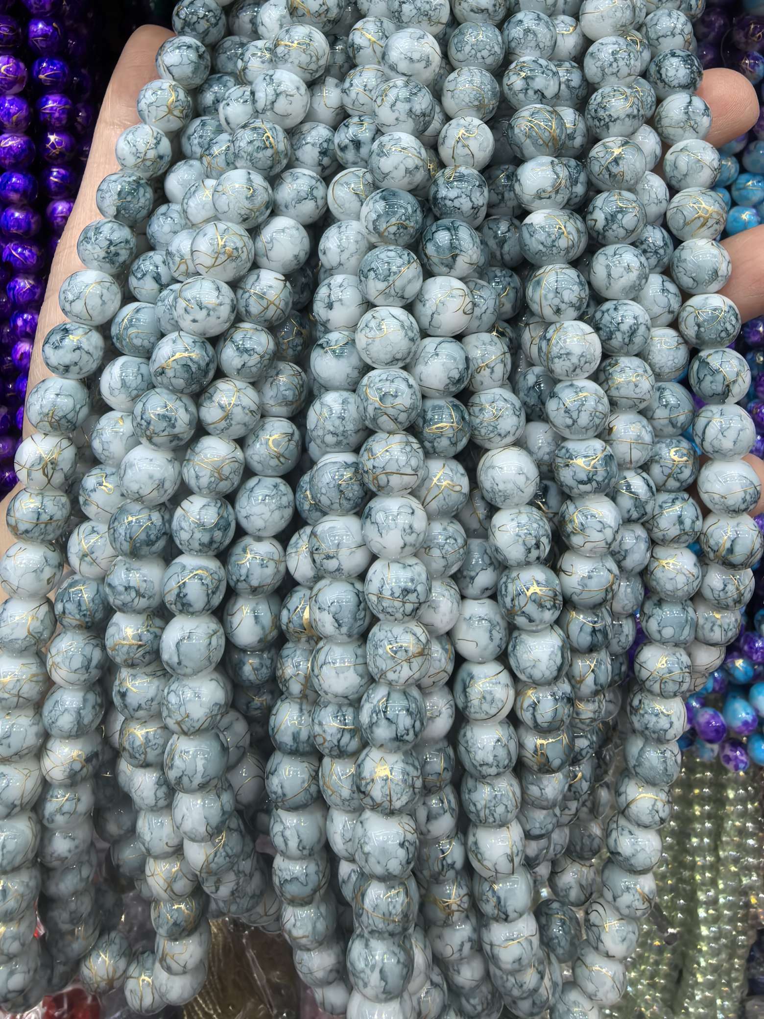 10mm porcelain beads and glass beads, one strand with about 80 pieces