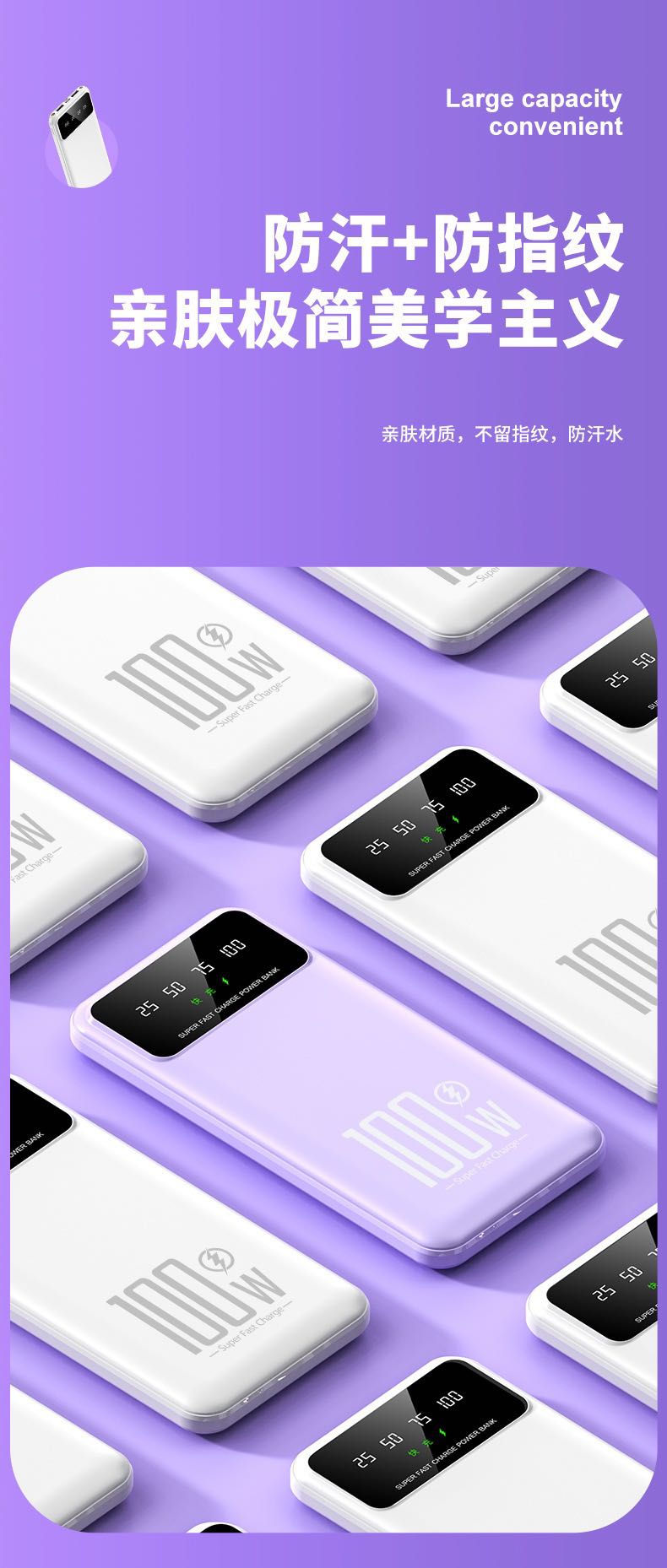 25 cross-border power bank 100W super fast charge 20000mAh large capacity ultra-thin kc Mobile Power supply custom logo