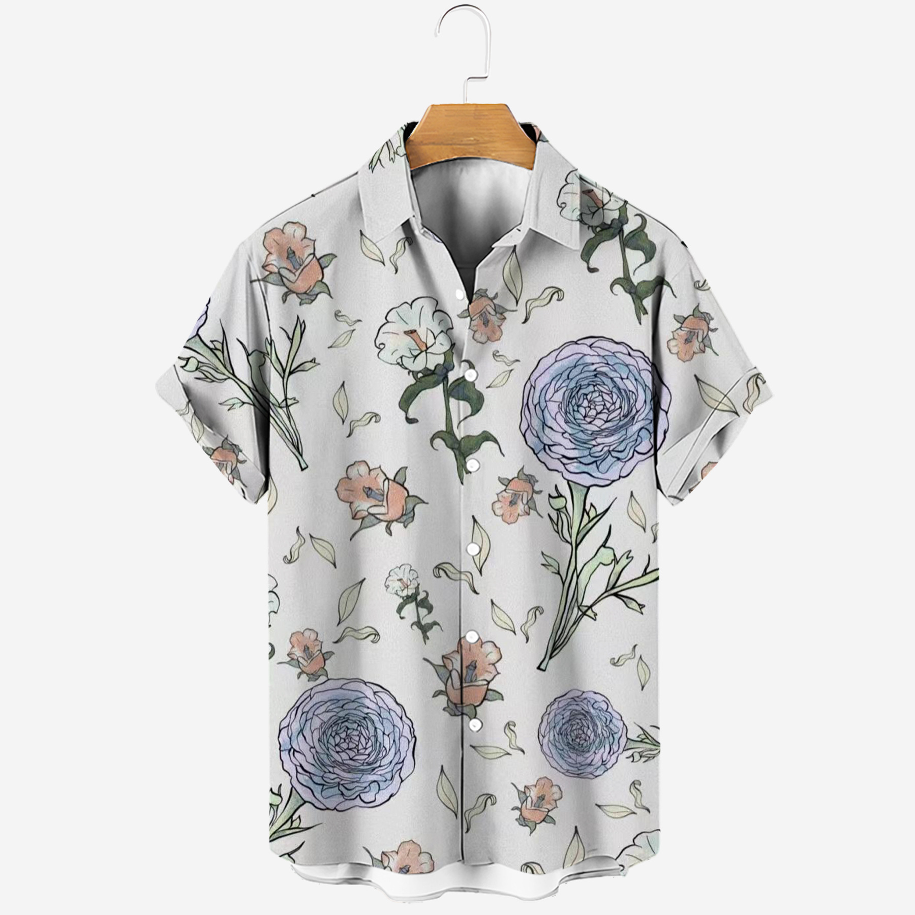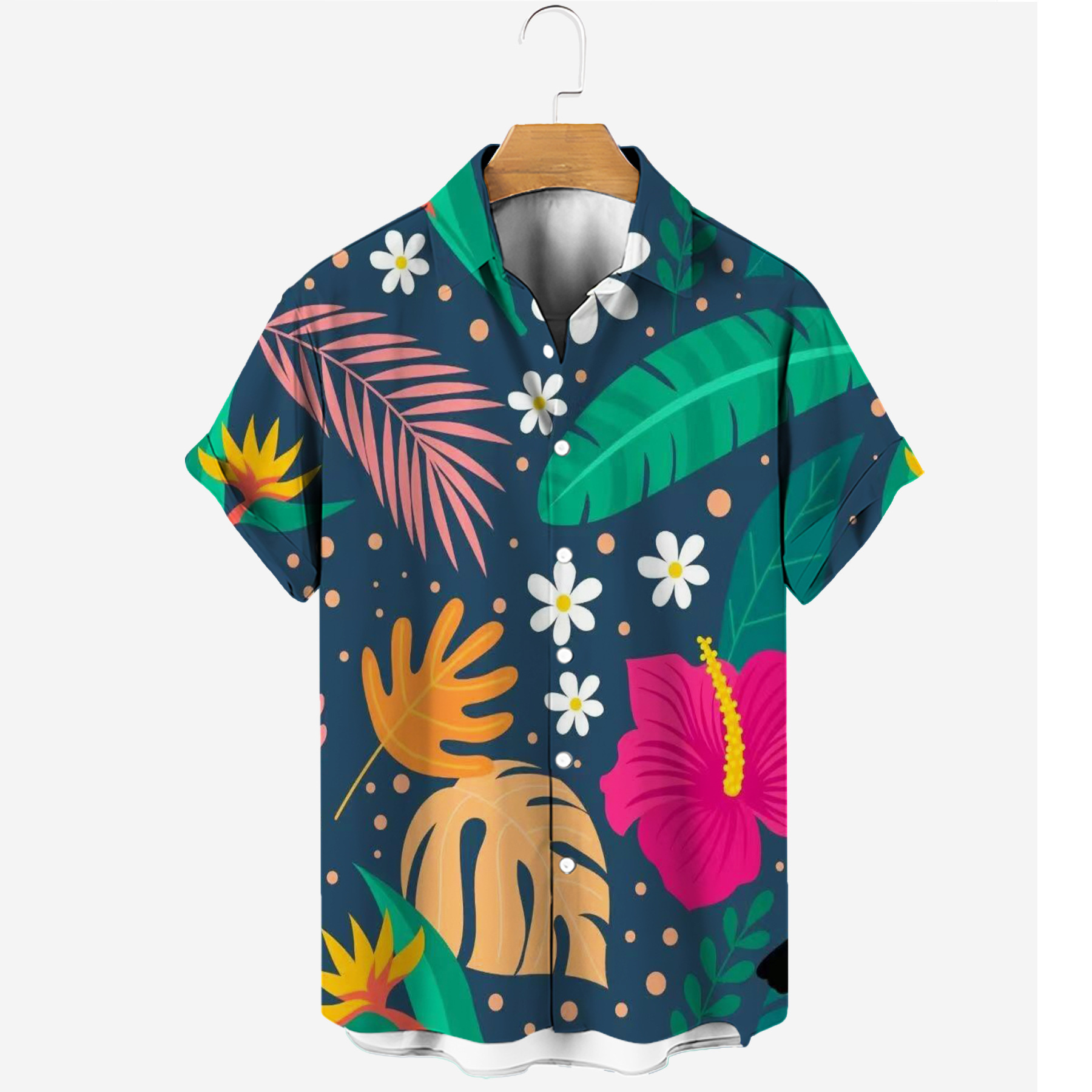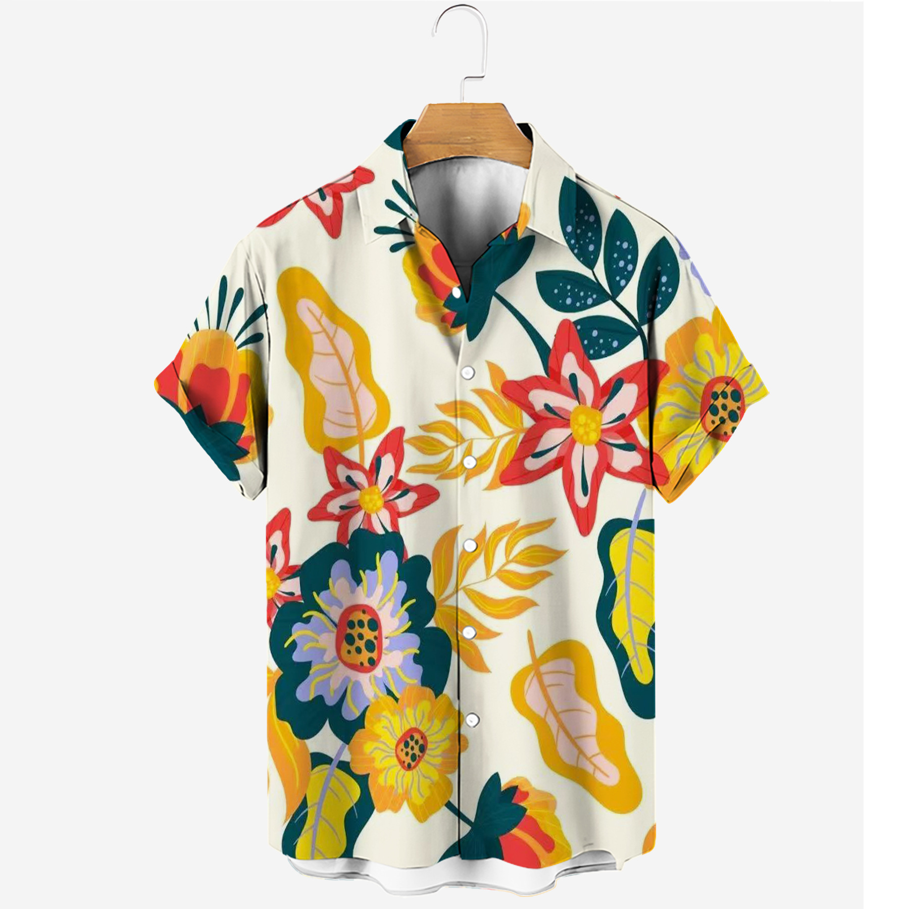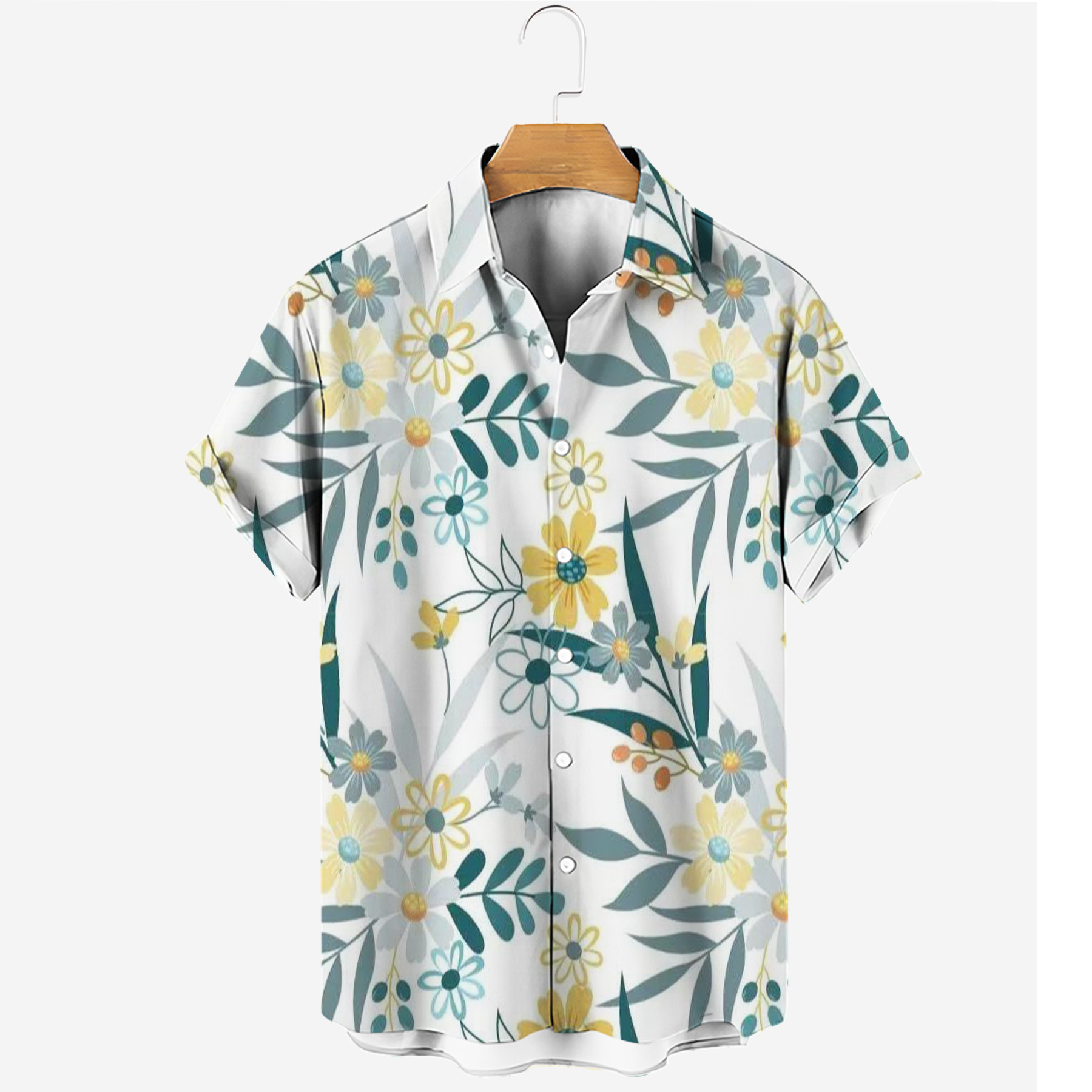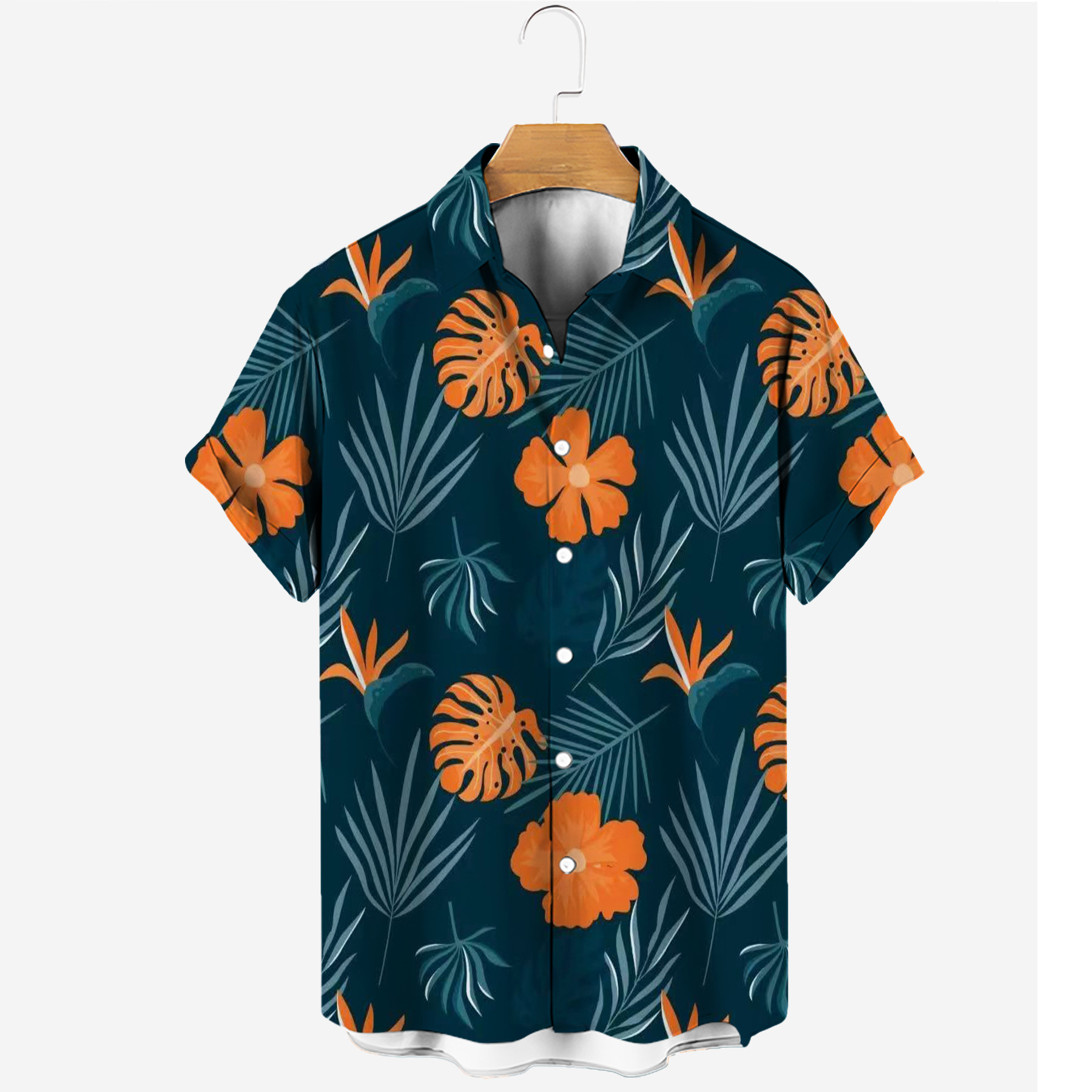new men's casual fashion trends four-sided elastic micro-elastic printed short-sleeved shirt hawaiian hot men's shirt