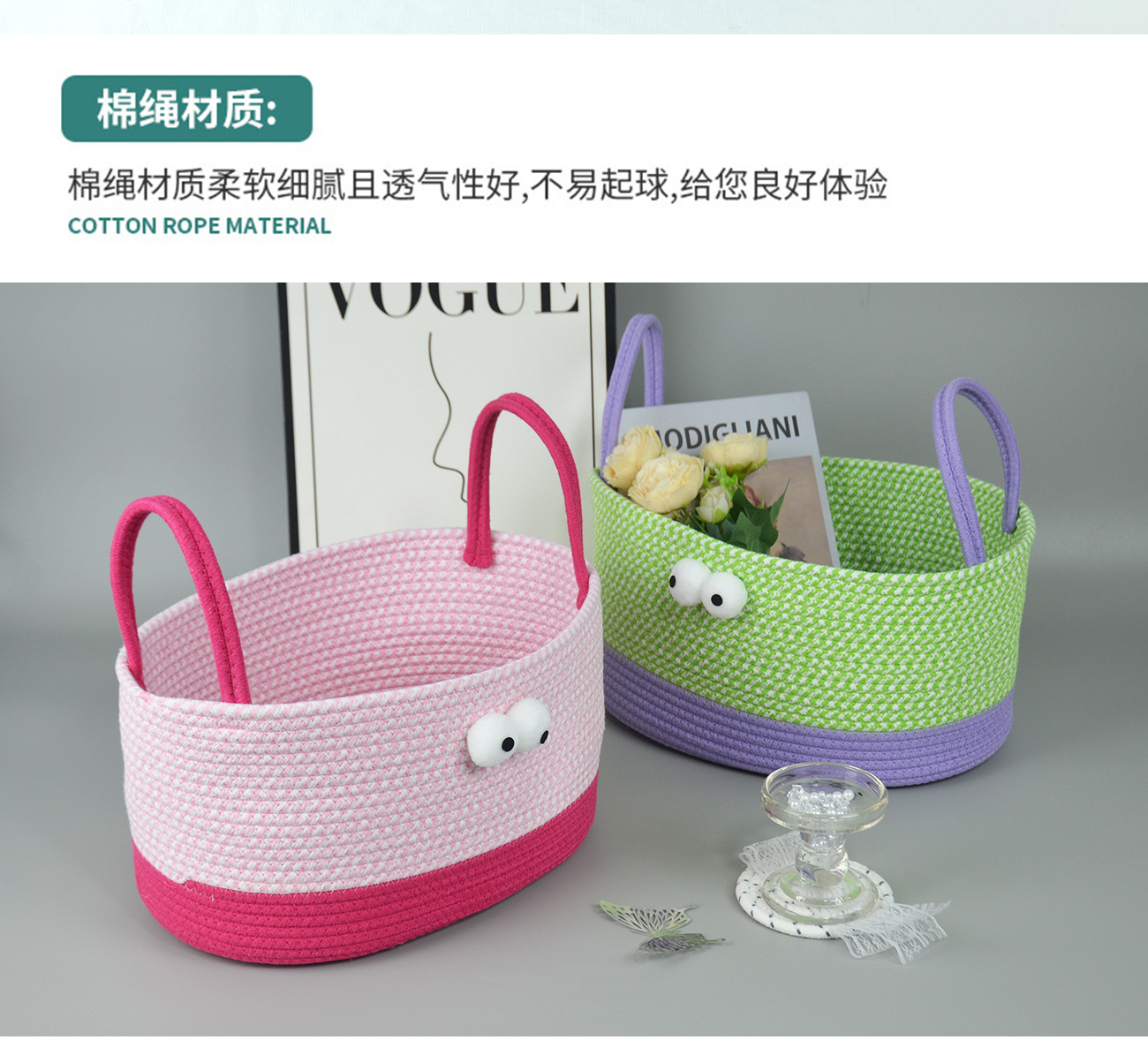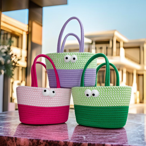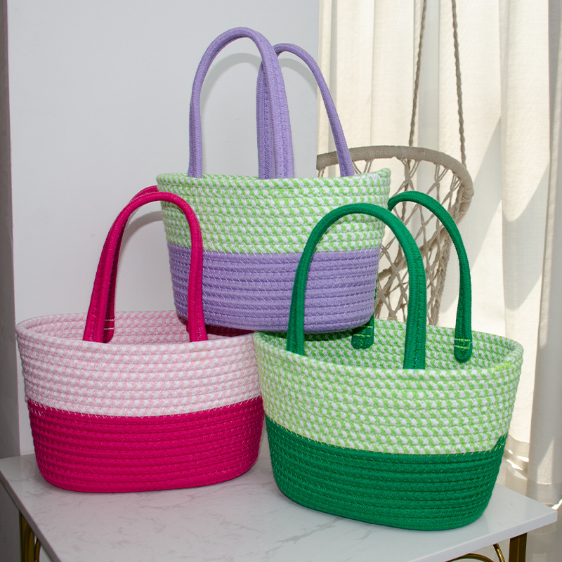 light purple + fruit green and white color matching cabas