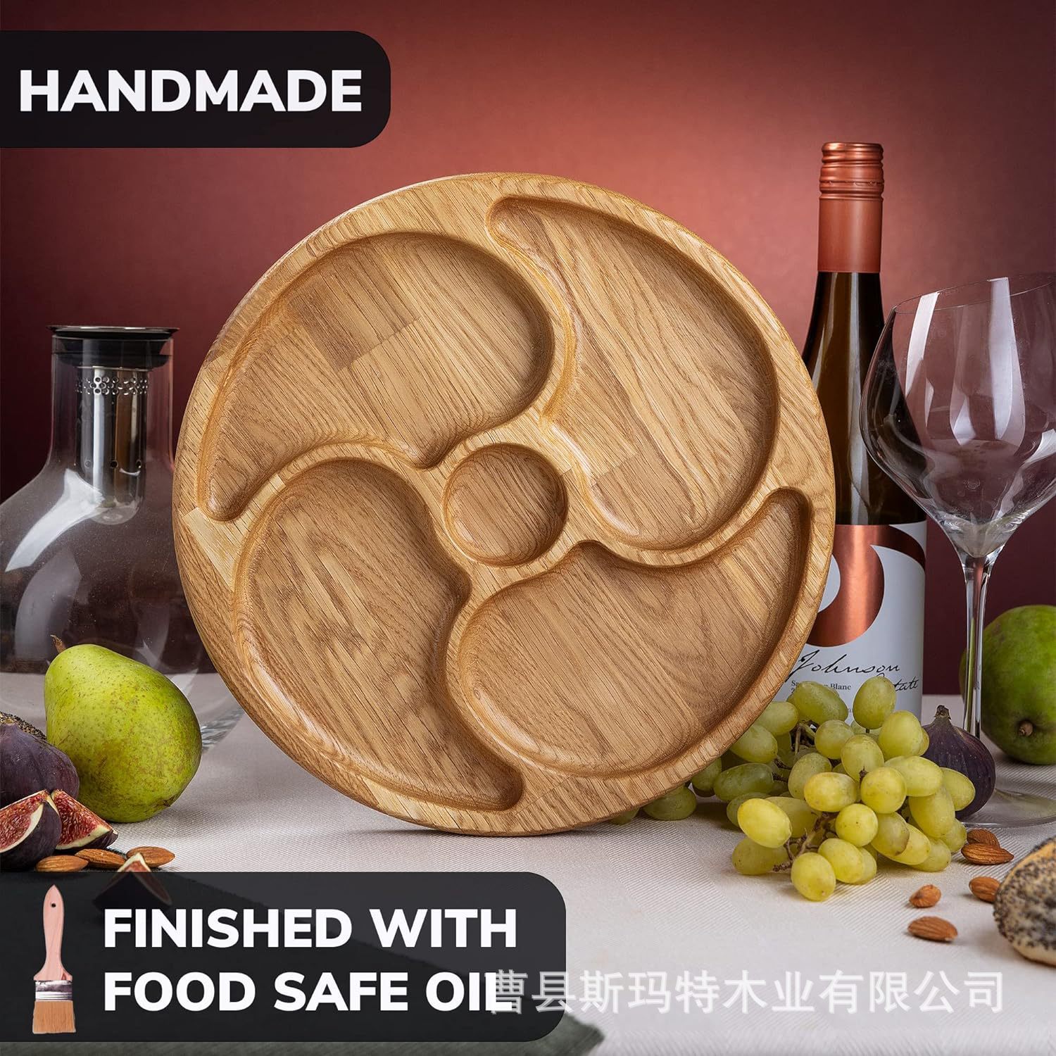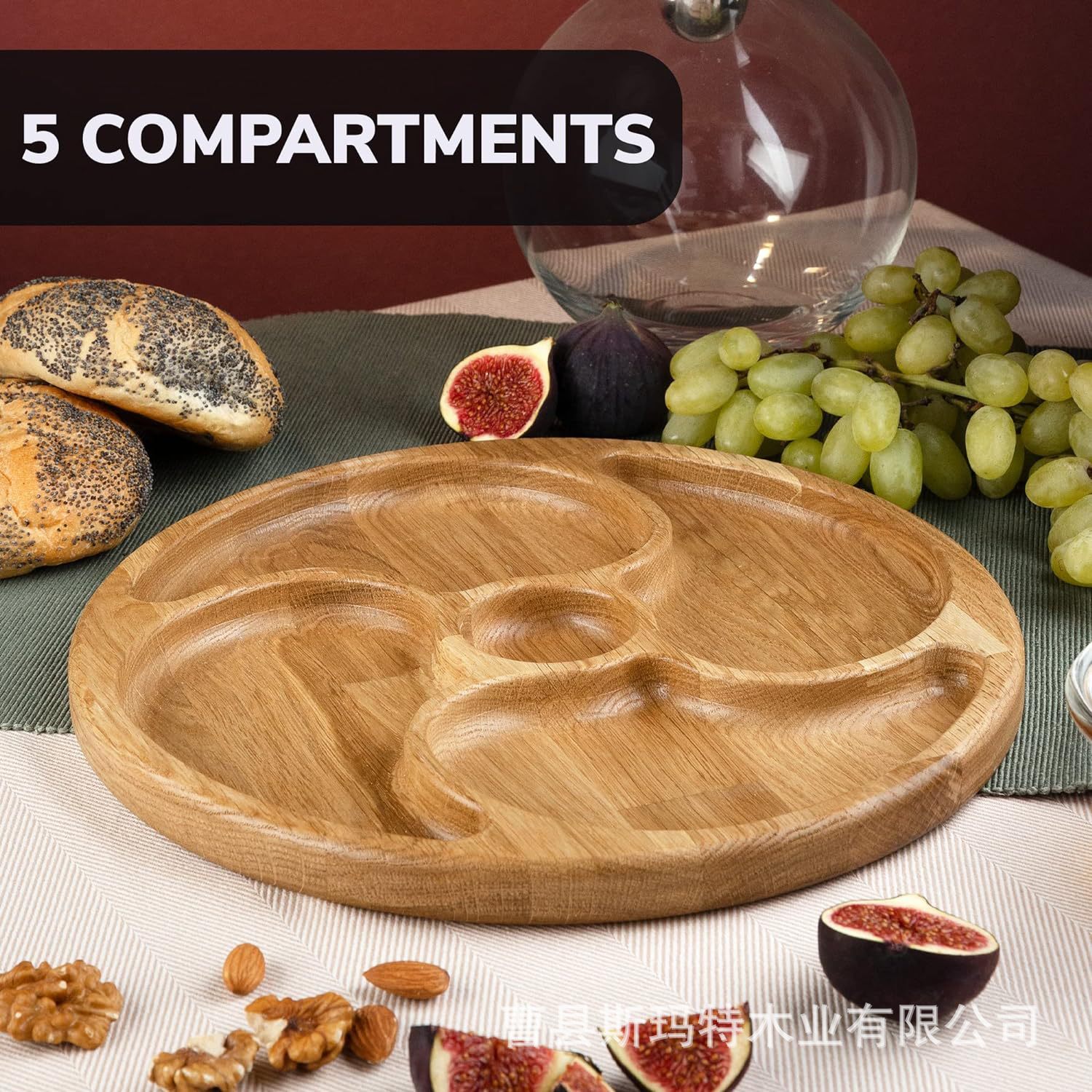 wooden round tray large capacity multi-compartment afternoon tea fruit dessert tray dried fruit nut tray