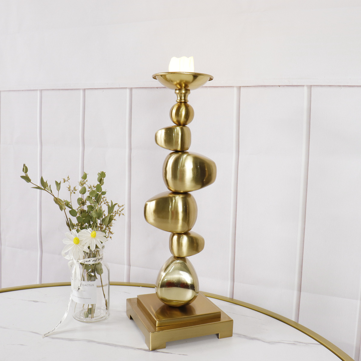 home decoration chinese block pile candlestick iron craft decorations electroplating brushed soft ornament decoration 中文版