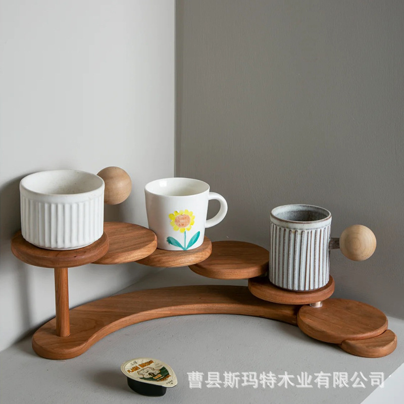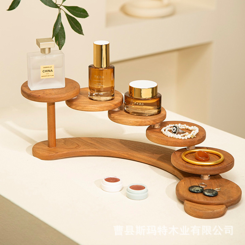 wooden step-by-step storage rack desktop jewelry aromatherapy storage rack solid wood bbk circular cake display rack