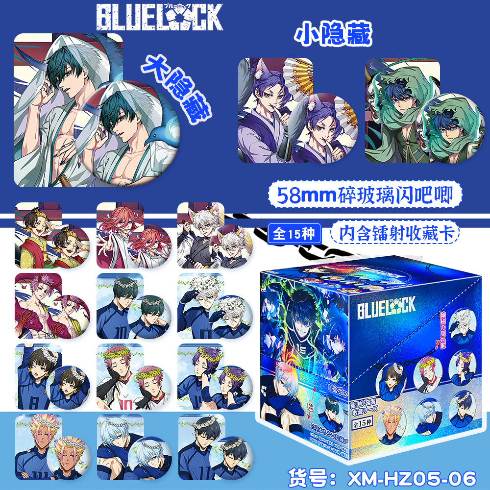 new 58mm laser blue prison blind box bar badge, a box of 15, with laser small card double-sided