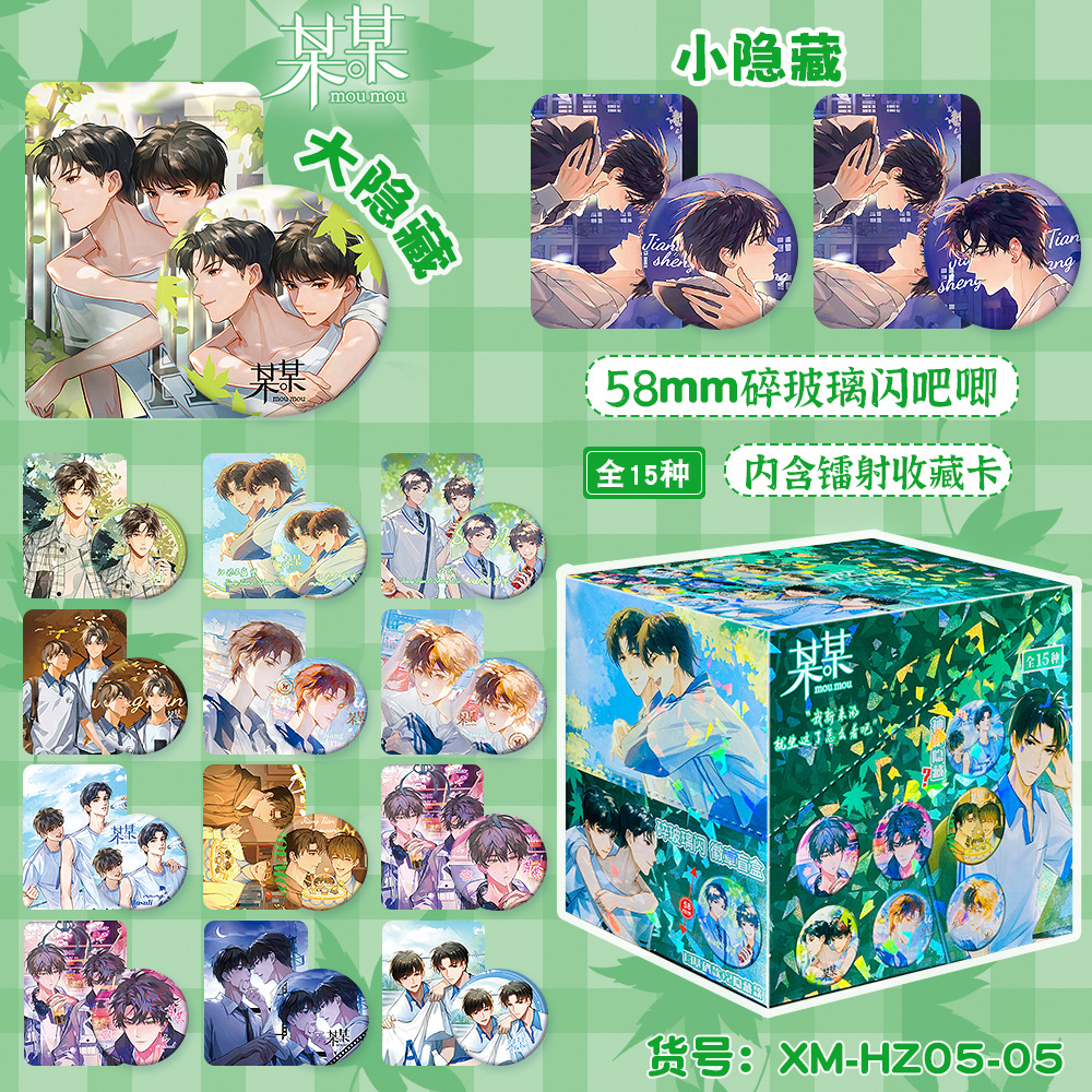 new 58mm laser wenhao blind box bar badge, a box of 15, with laser small card double-sided
