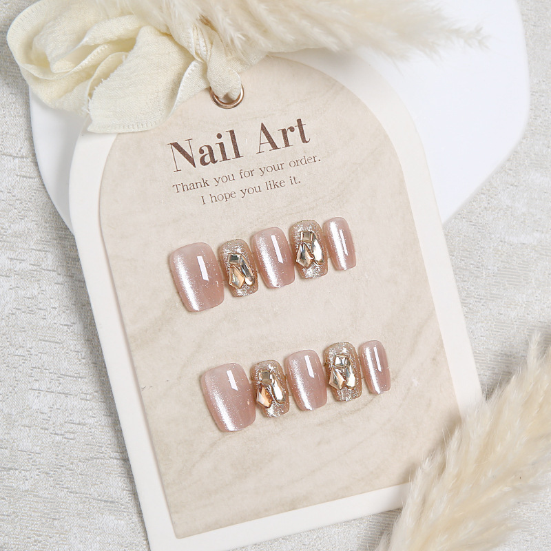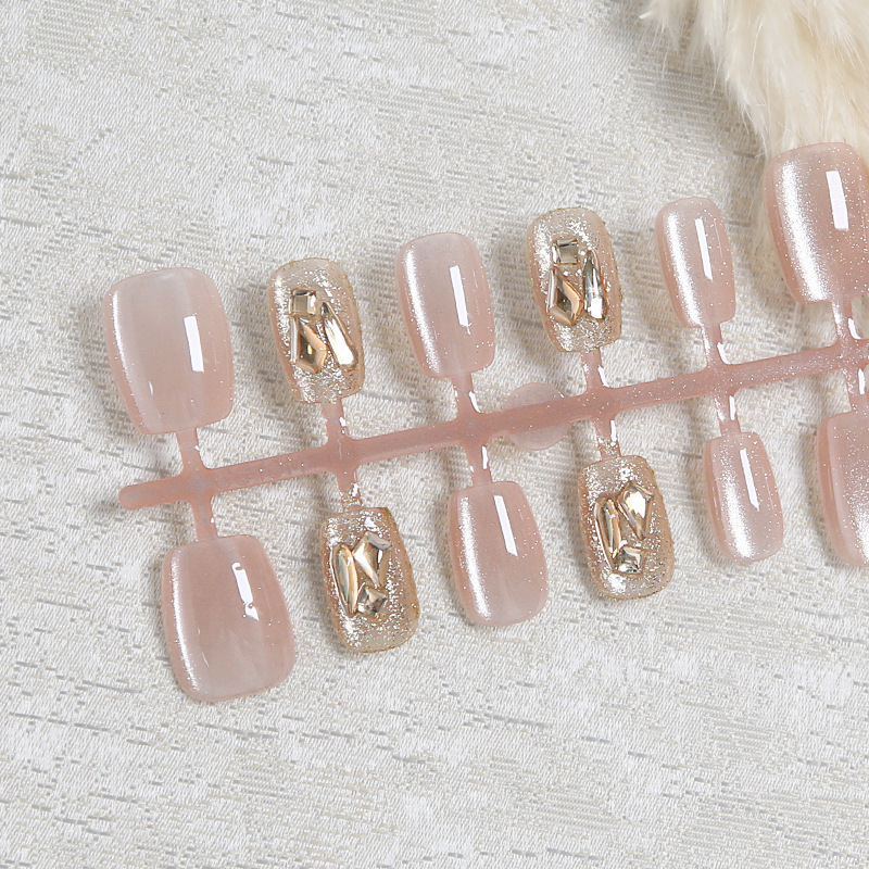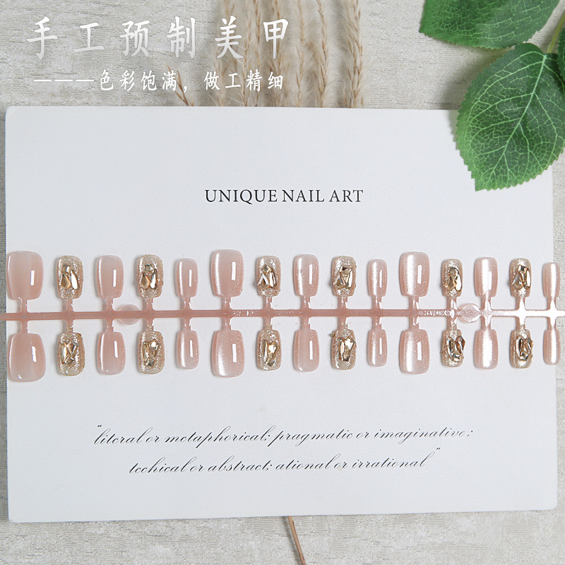 best-seller on douyin handmade wear nail milk tea eye rhinestone 30 pieces wear nail fake nail tip nail sticker wholesale 中文版