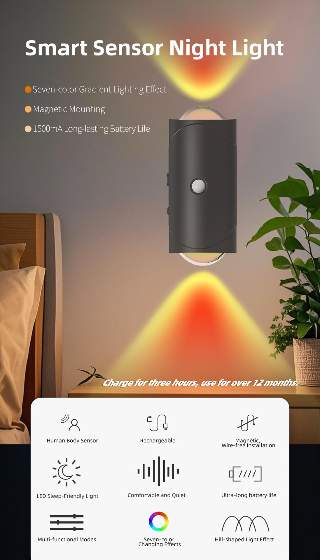 cross-border colorful gradient atmosphere small night lamp intelligent human body induction magnetic suction rechargeable magic color wall lamp home lamp 中文版