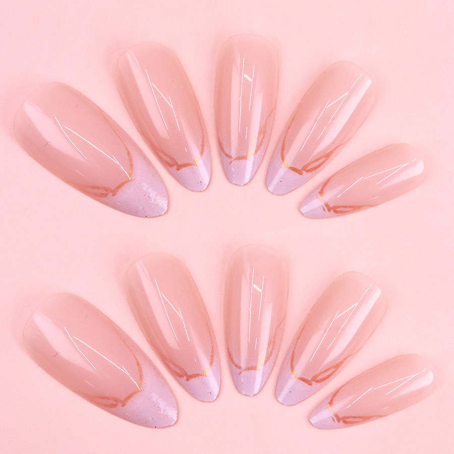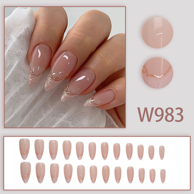 almond nail long shimmering powder shimmer golden edge french manicure sweet ins style european and american fashion mixed batch wearable nail 中文版