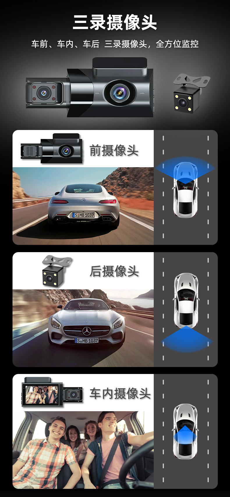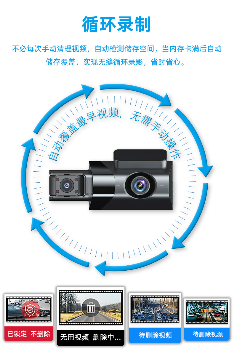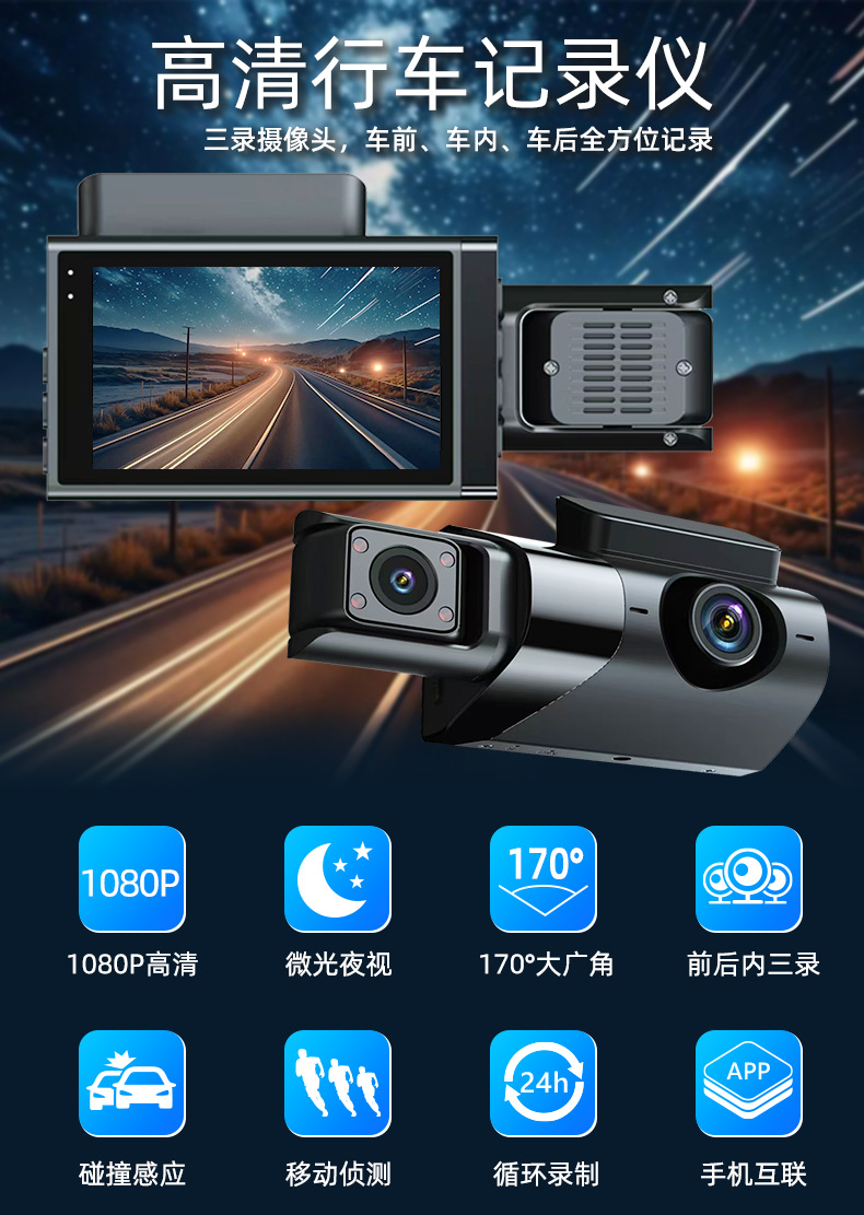 new suitable for audi a6 a7 a8 line-free front and rear three recording hd 24h monitoring driving recorder