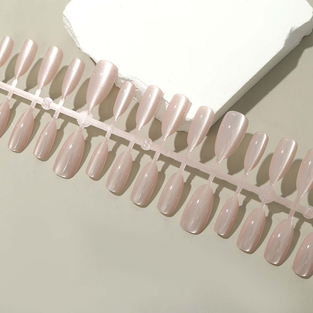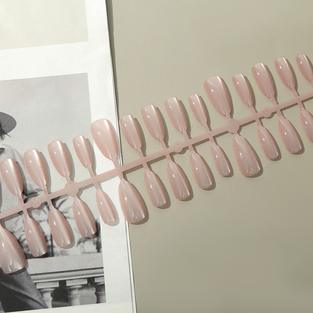 almond nail nude pink eye hand-worn nail prefabrication nail tip temperament pure color nail stickers [30 pieces]] 中文版