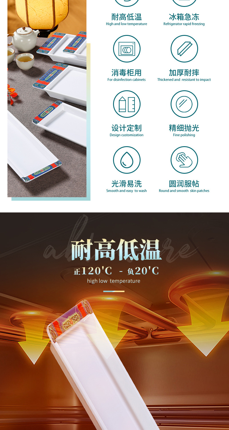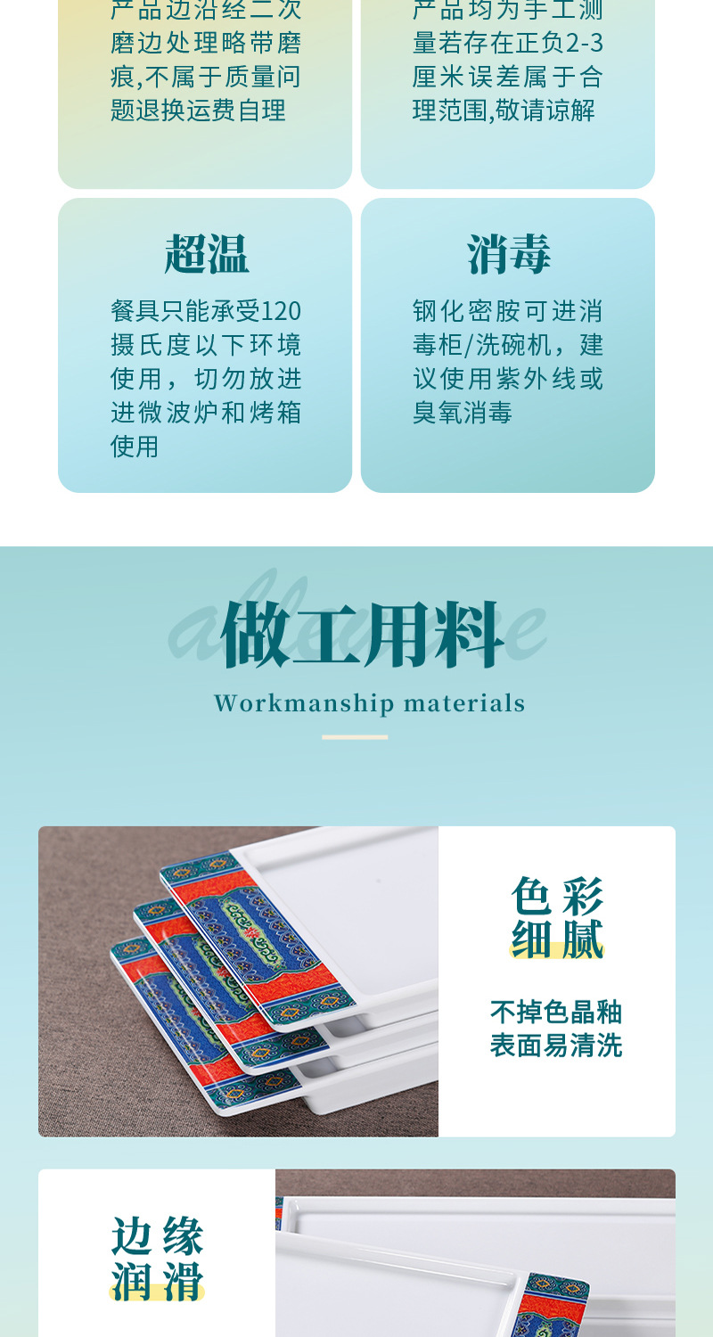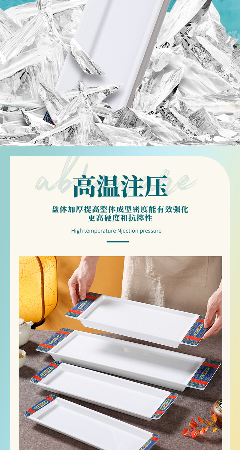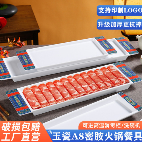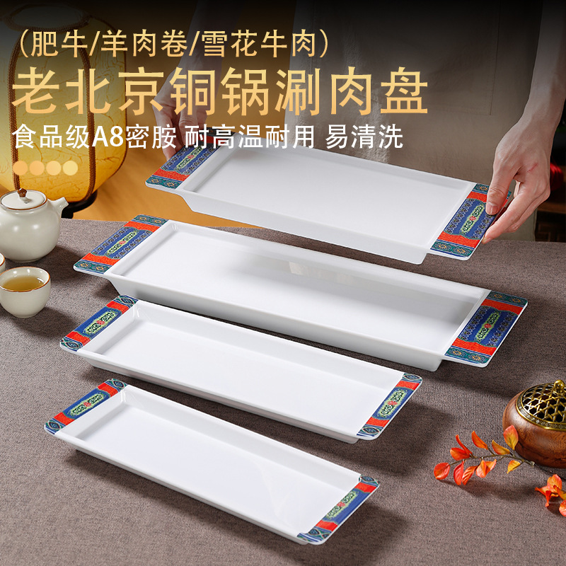 melamine rectangular plate hot pot restaurant beef roll boiled meat plate imitation porcelain plastic beef plate barbecue plate commercial tableware 中文版