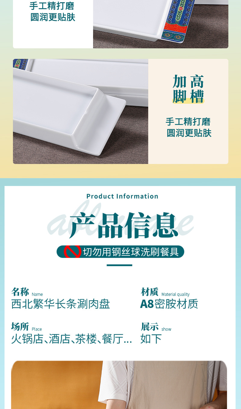 melamine rectangular plate hot pot restaurant beef roll boiled meat plate imitation porcelain plastic beef plate barbecue plate commercial tableware