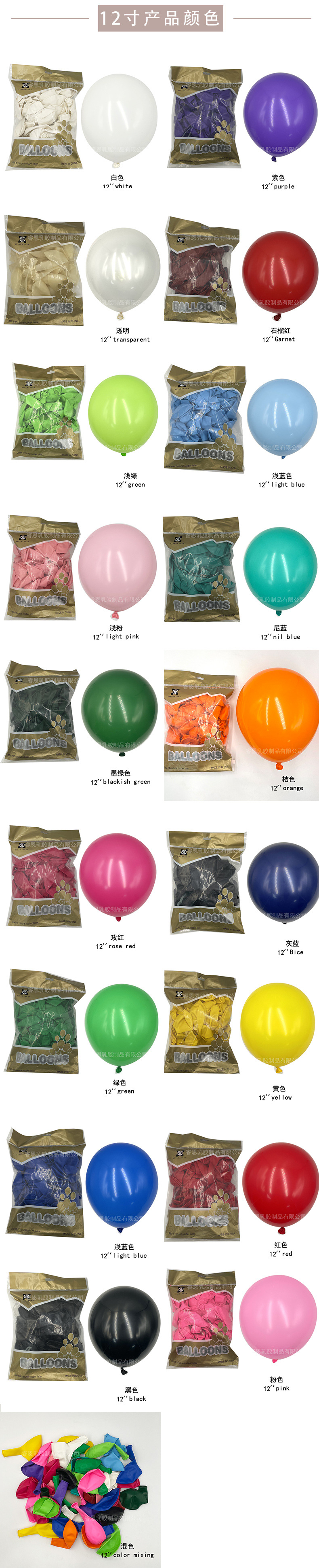 12-inch matte rose red (100 pieces per pack)