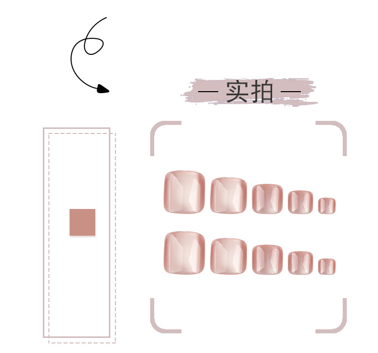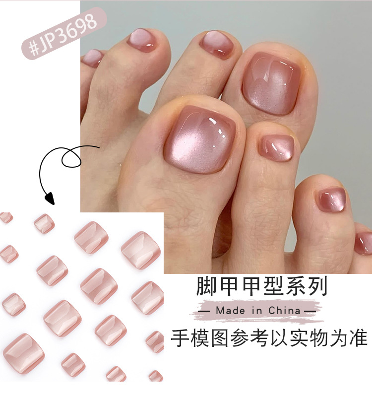 wearable toe nail manicure light pink eye toenail simple short square flash toe nail nail tip wholesale 中文版