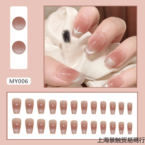 smile cat's eye wear nail detachable nail stickers nail patch blush gradient nail shaped piece ballet nail 24 pieces 中文版