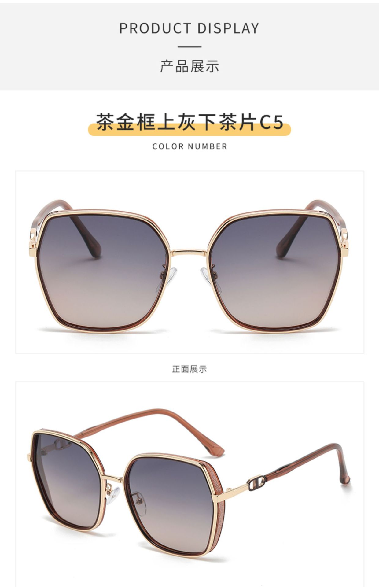 black gold frame black and grey lens