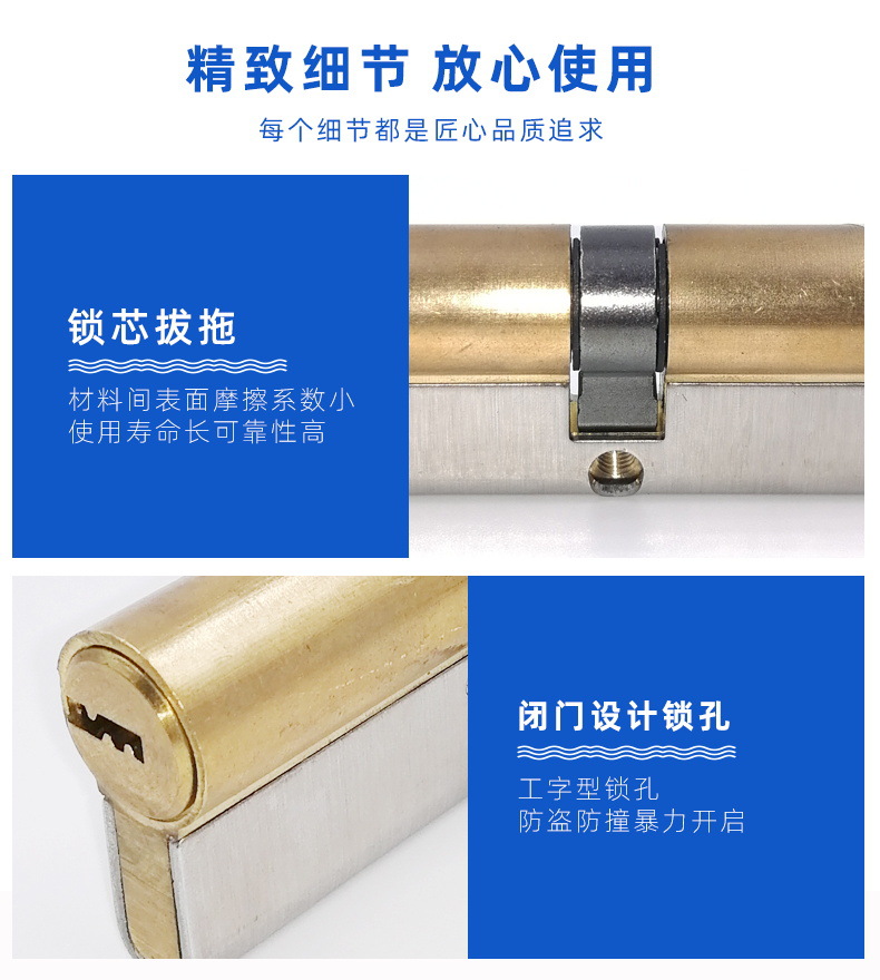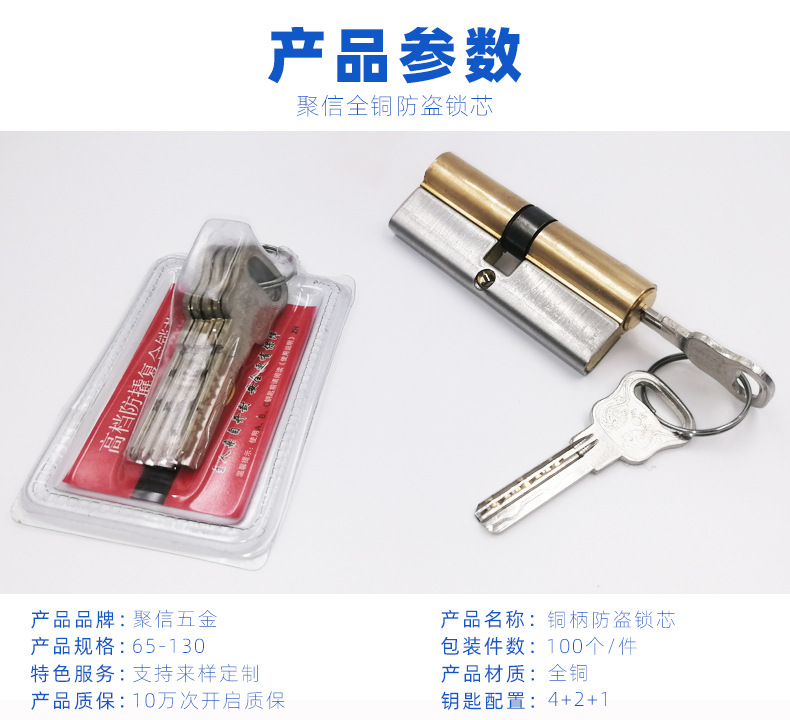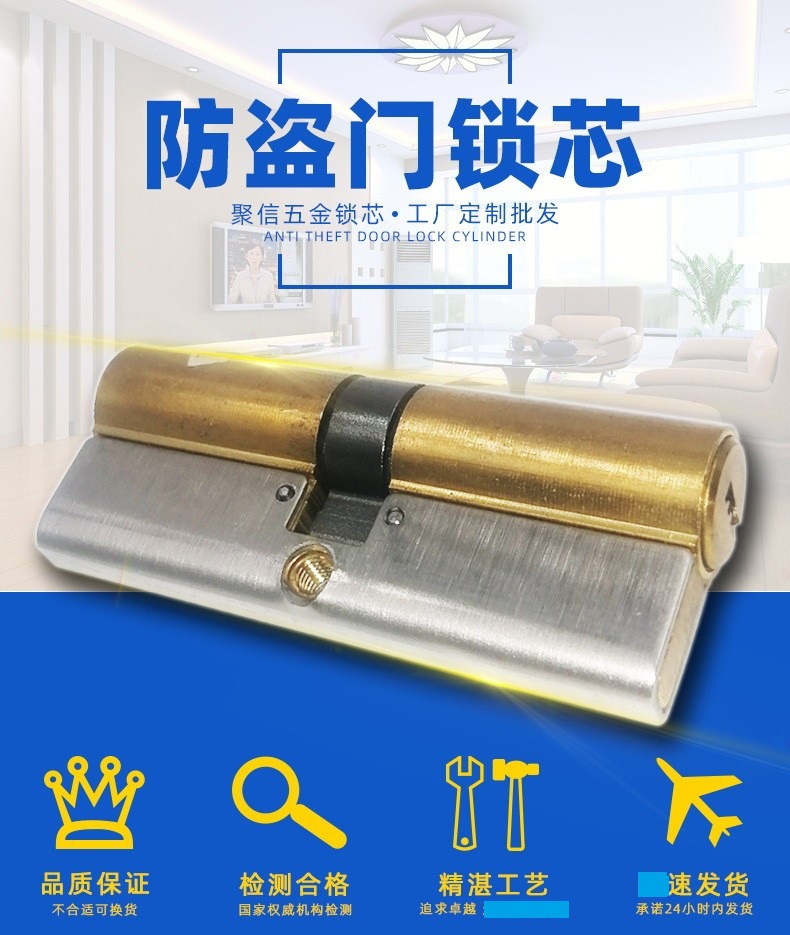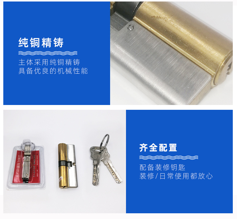 factory supply copper handle 75 lock cylinder inner door key lock cylinder gate entrance anti-pry double-sided double-open lock cylinder 中文版