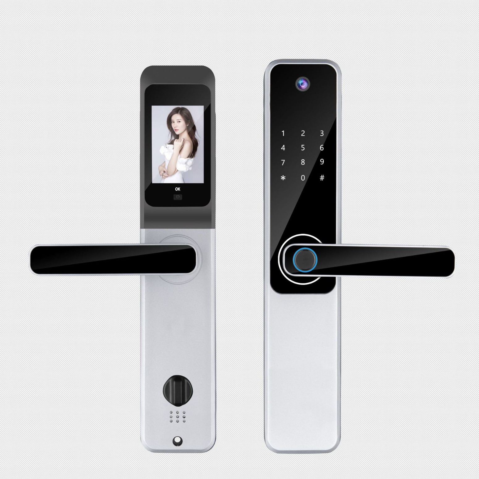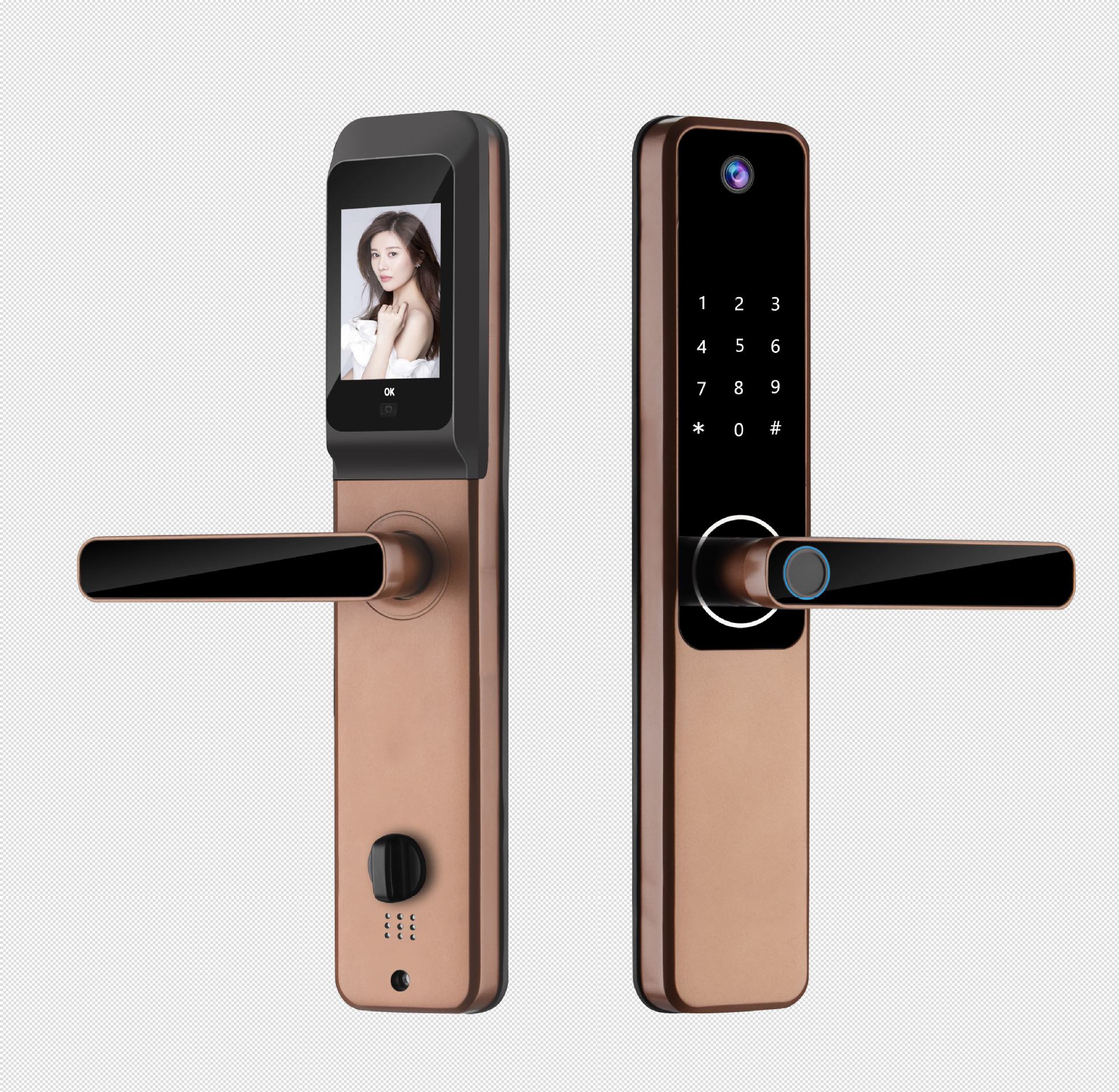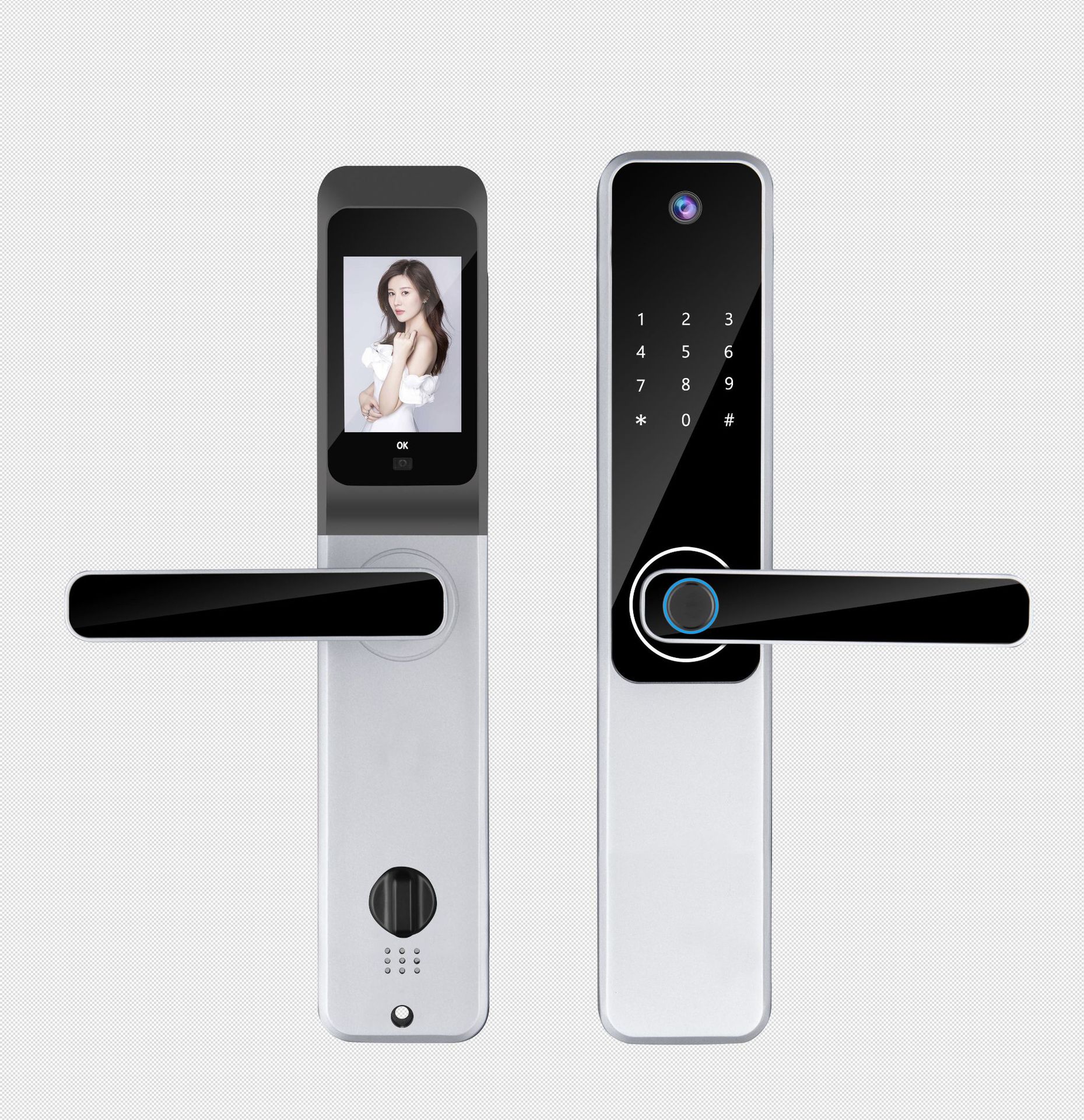 QLEUNG一握开涂鸦猫眼带指纹密码卡片钥匙开门可视猫眼智能锁
