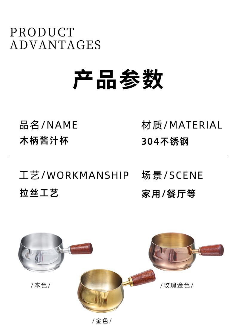 cross-border 304 stainless steel sauce cup western sauce cup steak seasoning cup wooden handle tomato salad dish 中文版