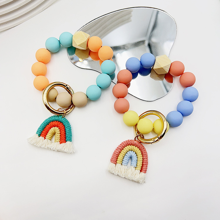 Product Name:Candy color beads rainbow tassel keychain