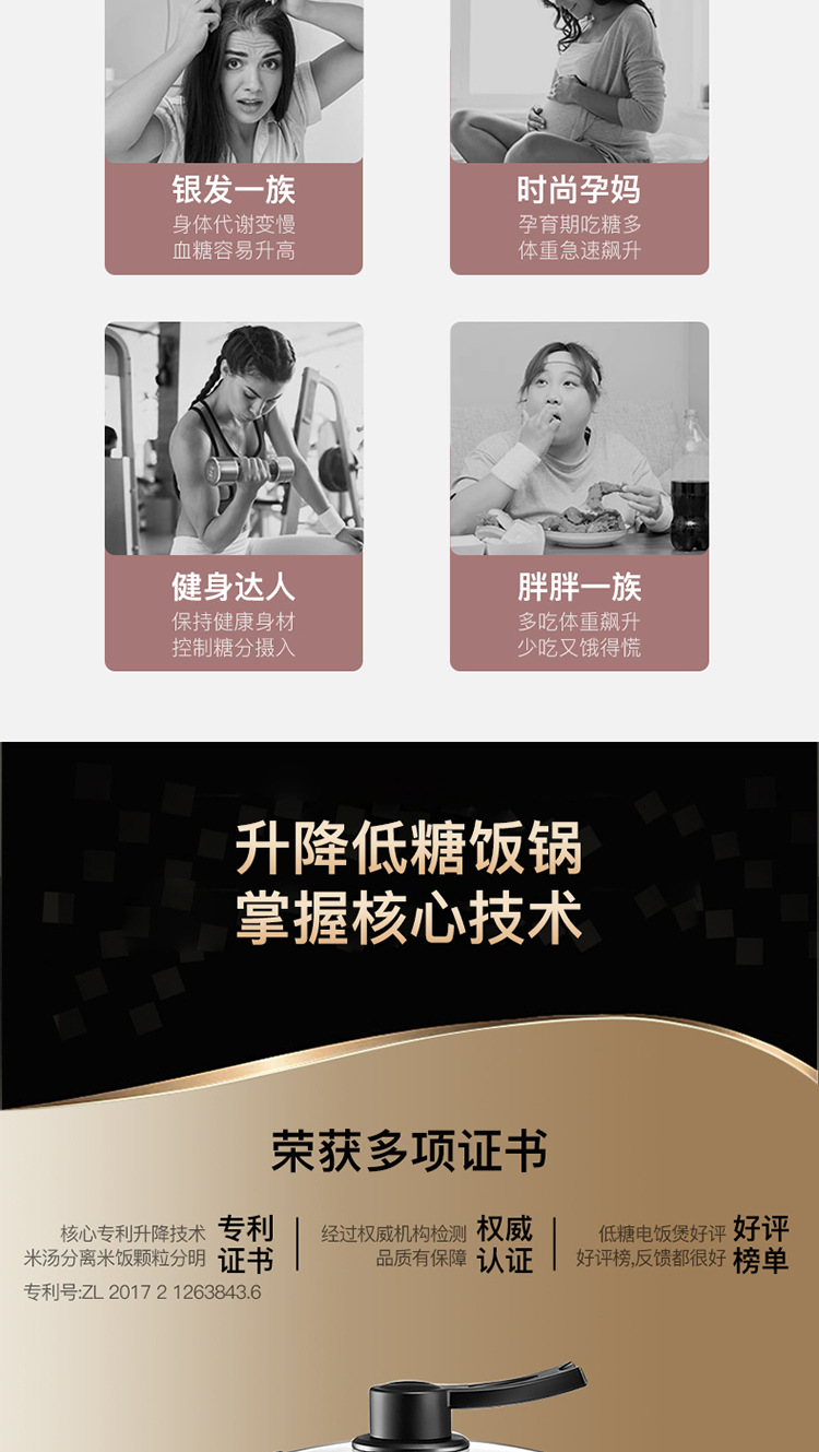 6l champagne gold stainless steel (suitable for 6-9 people) middle lifting