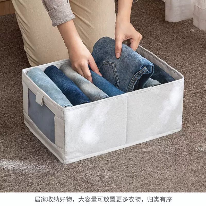 Clothes storage box with visible window, cotton and linen storage box, drawer-style wardrobe organizing box, home textile pants storage box