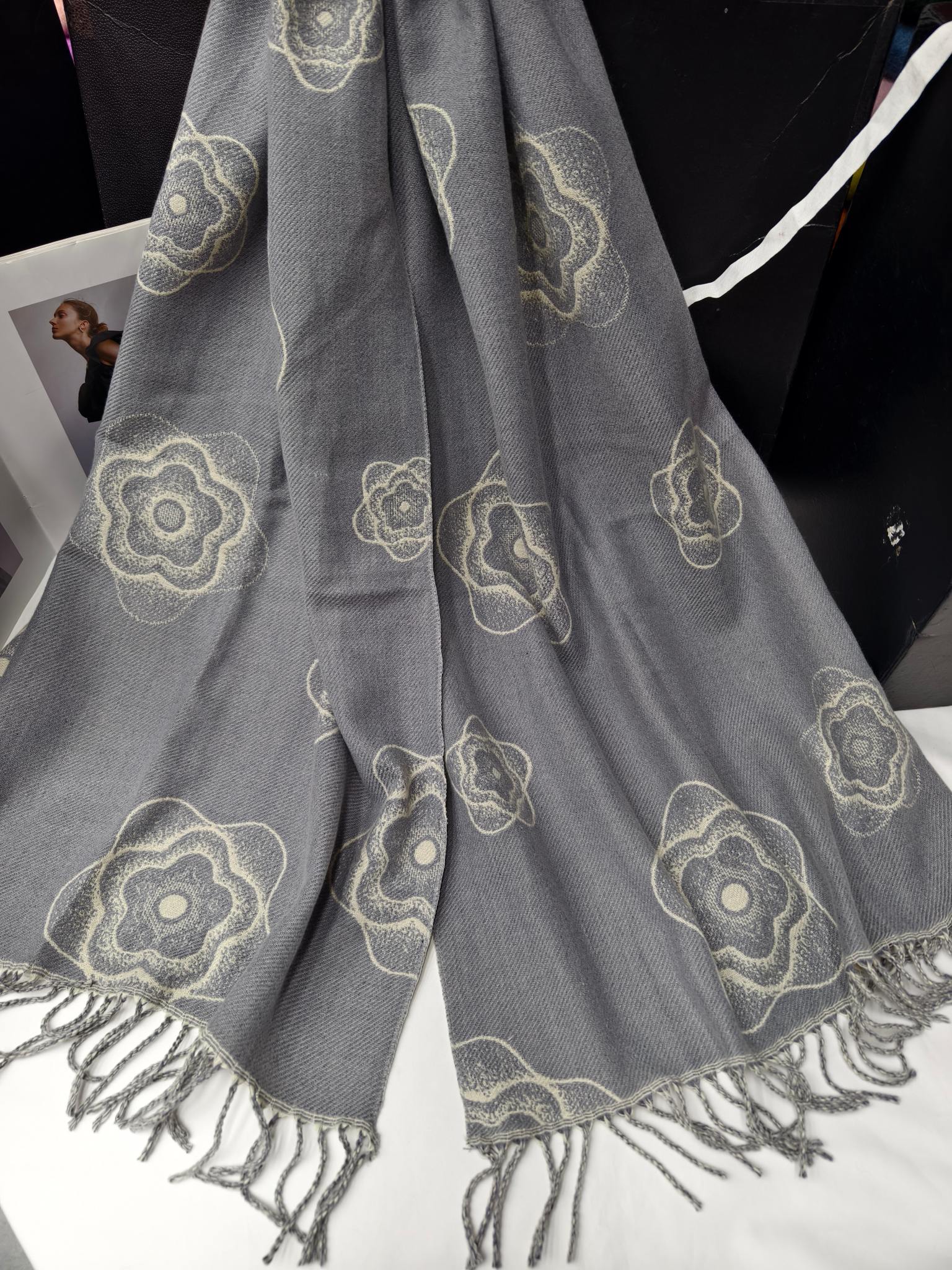 New model, flower pattern, material: core-spun yarn, weight: 320 grams, size: 65*180, item number: 21150300