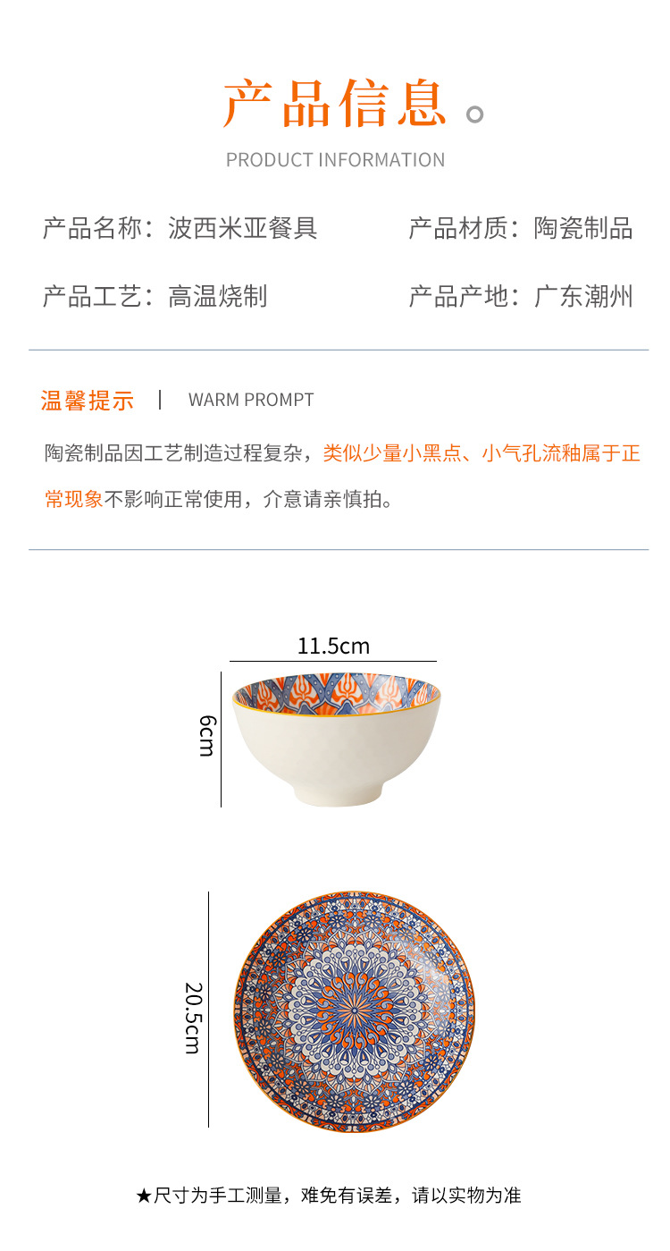 bohemian 4 bowls and 2 plates (16 sets per box)