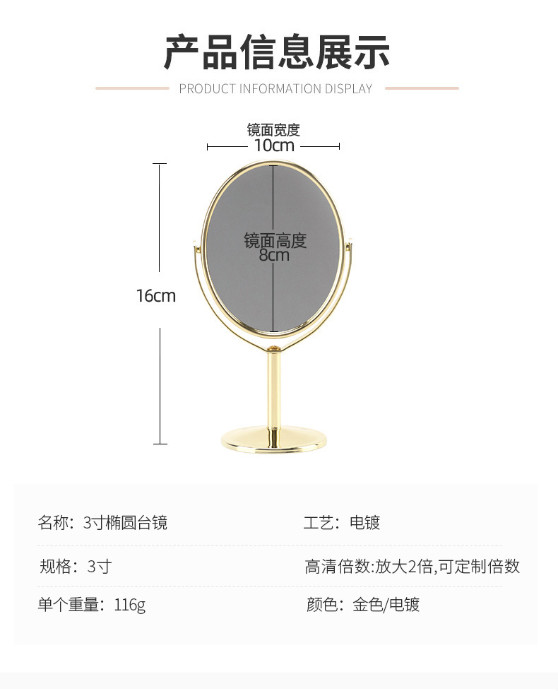3-inch rose gold oval mirror